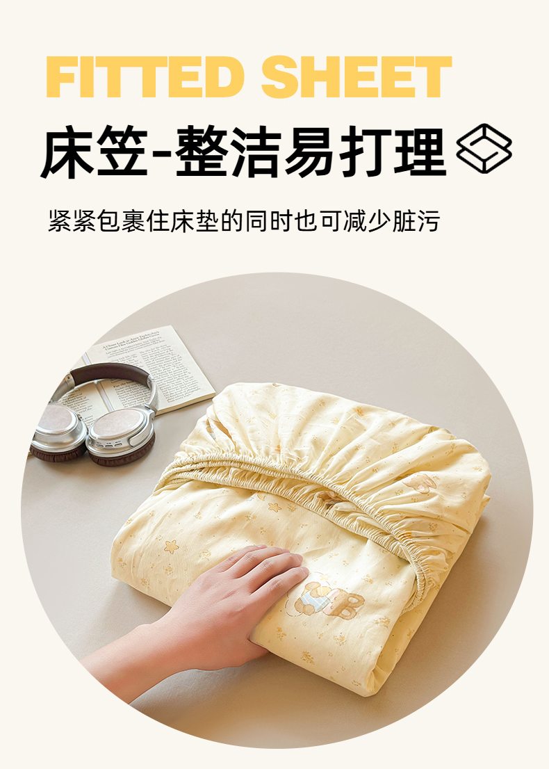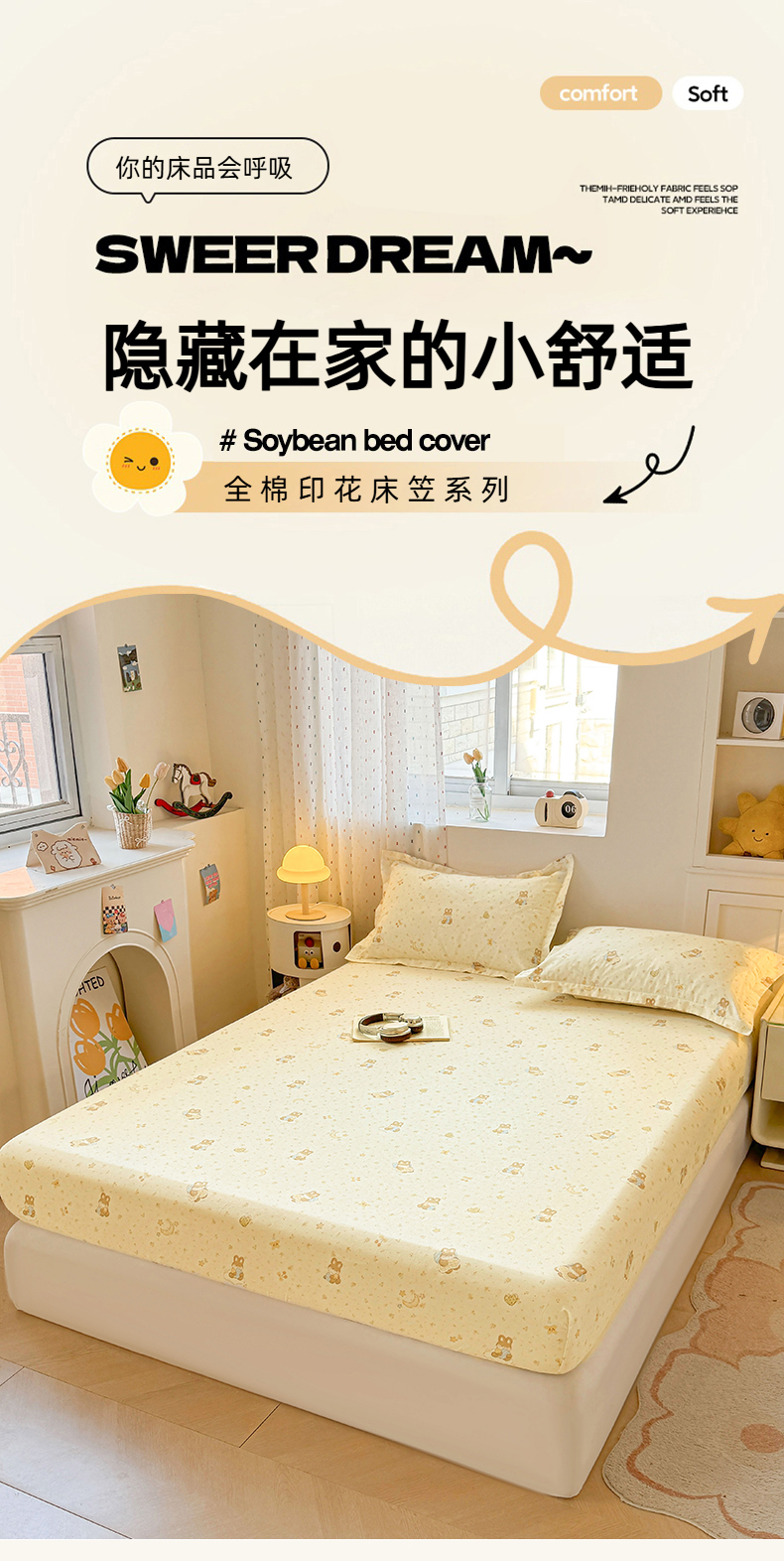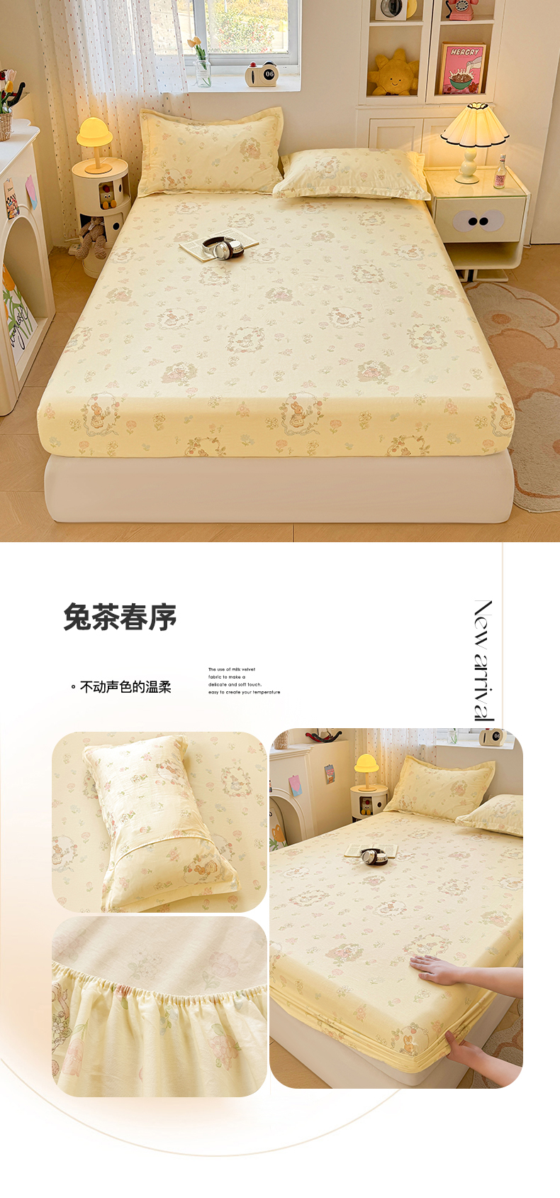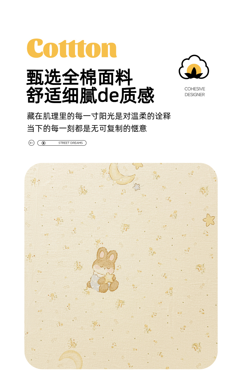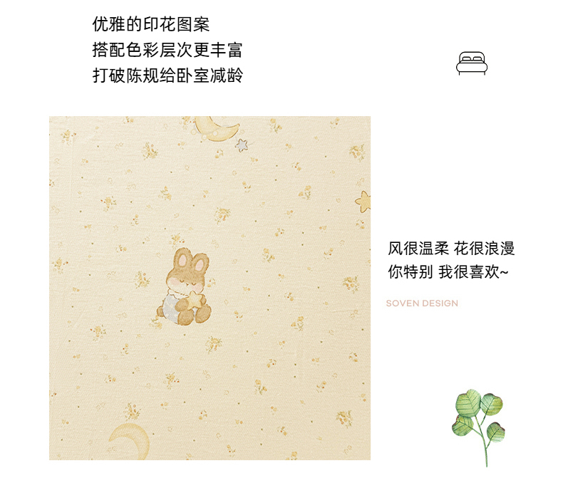 名优家纺 2026新款13070全棉印花单床笠 星点兔语