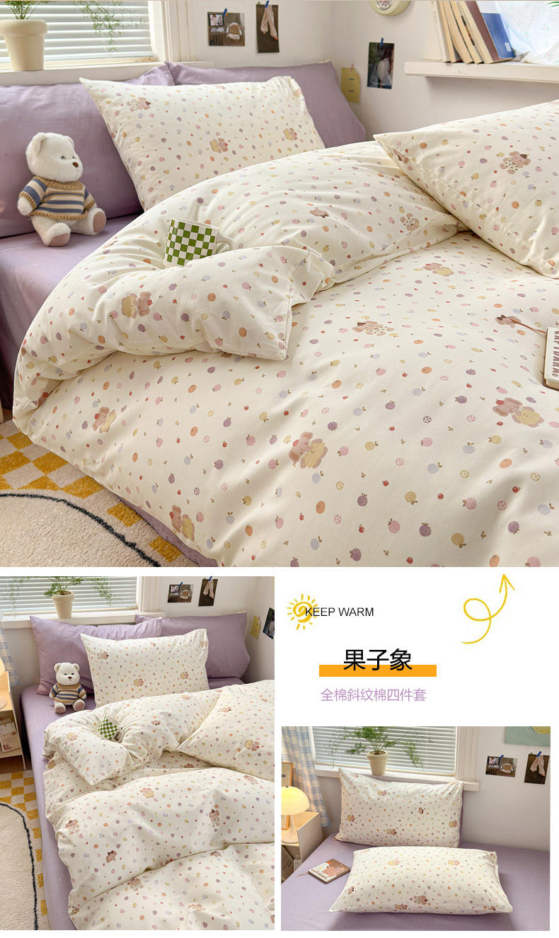 (总)麦伦家居 2025新款40s斜纹全棉纯棉跑量款卡通小清新四件套,领结熊宝,抱抱熊,樱桃熊仔,甜品小狗,番茄小熊,好伙伴,嘟嘟猫,繁花,可爱萌宠,可爱颂,蓝色甜心,萌趣乐园,甜蜜小狗,甜甜心事,小确幸,小熊猫,心心相印,樱桃乐园