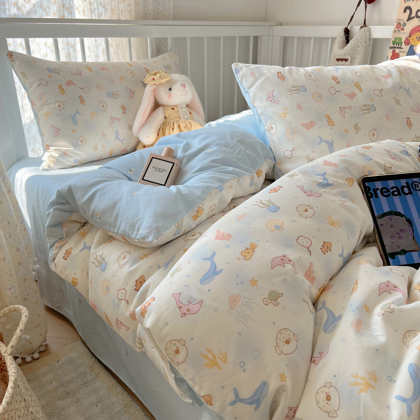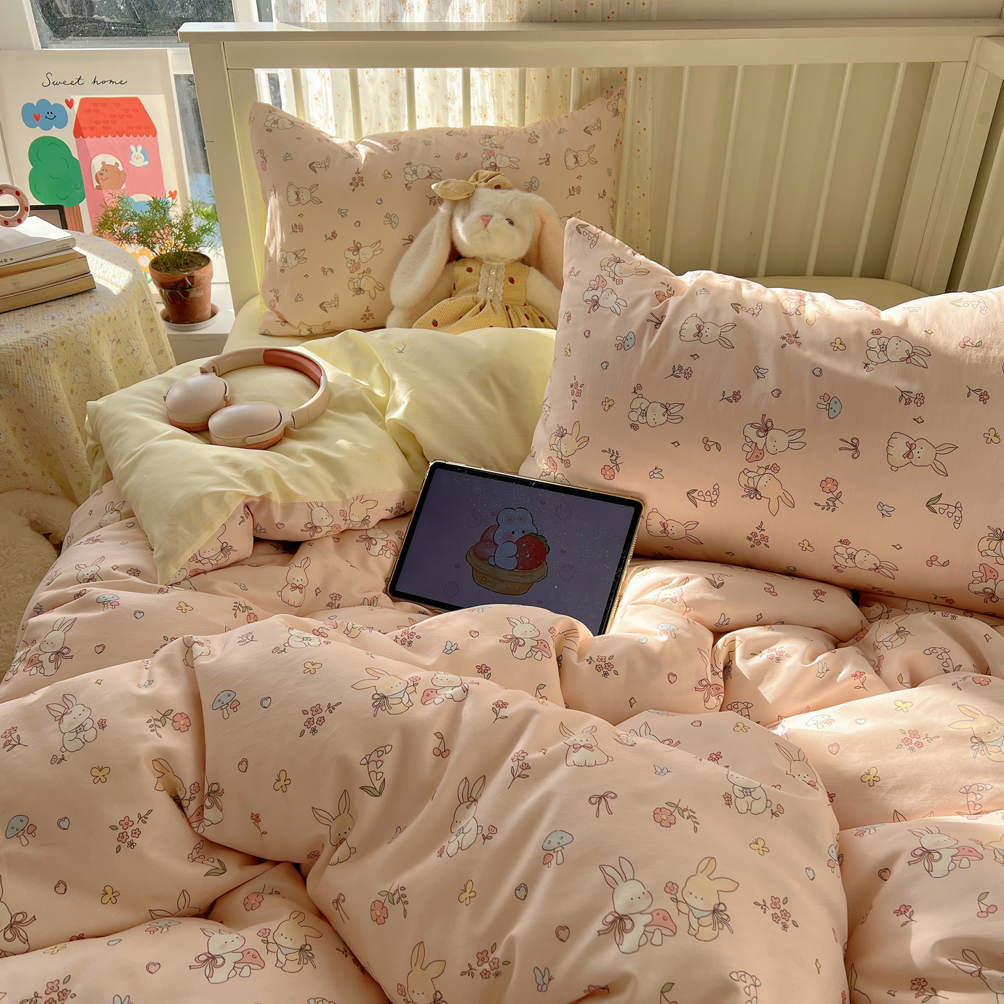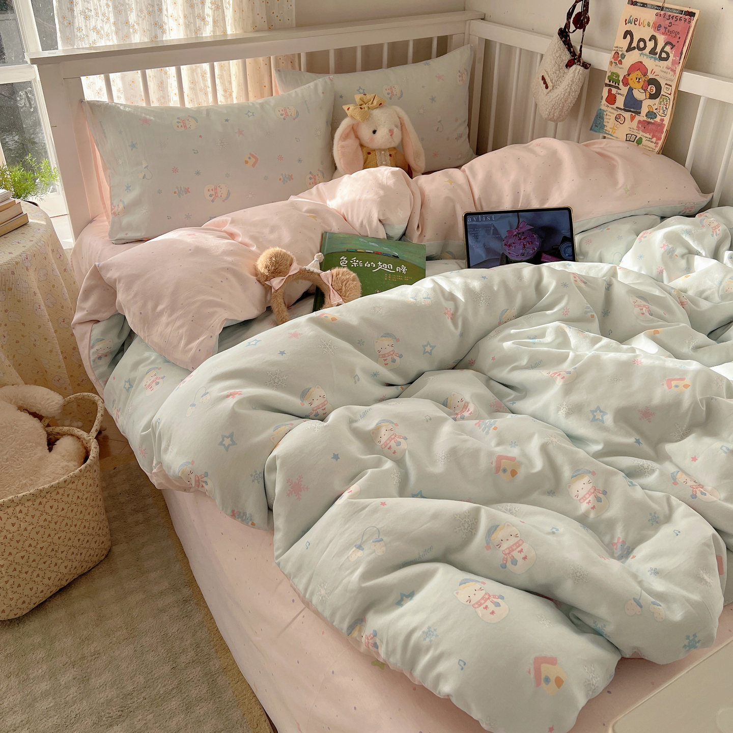 (总)桃喜 2026新款全棉混搭卡通印花学生三件套四件套,费尔岛蝴蝶结小狗,费尔岛小熊,可爱动物团,可爱小兔子,星星猫咪