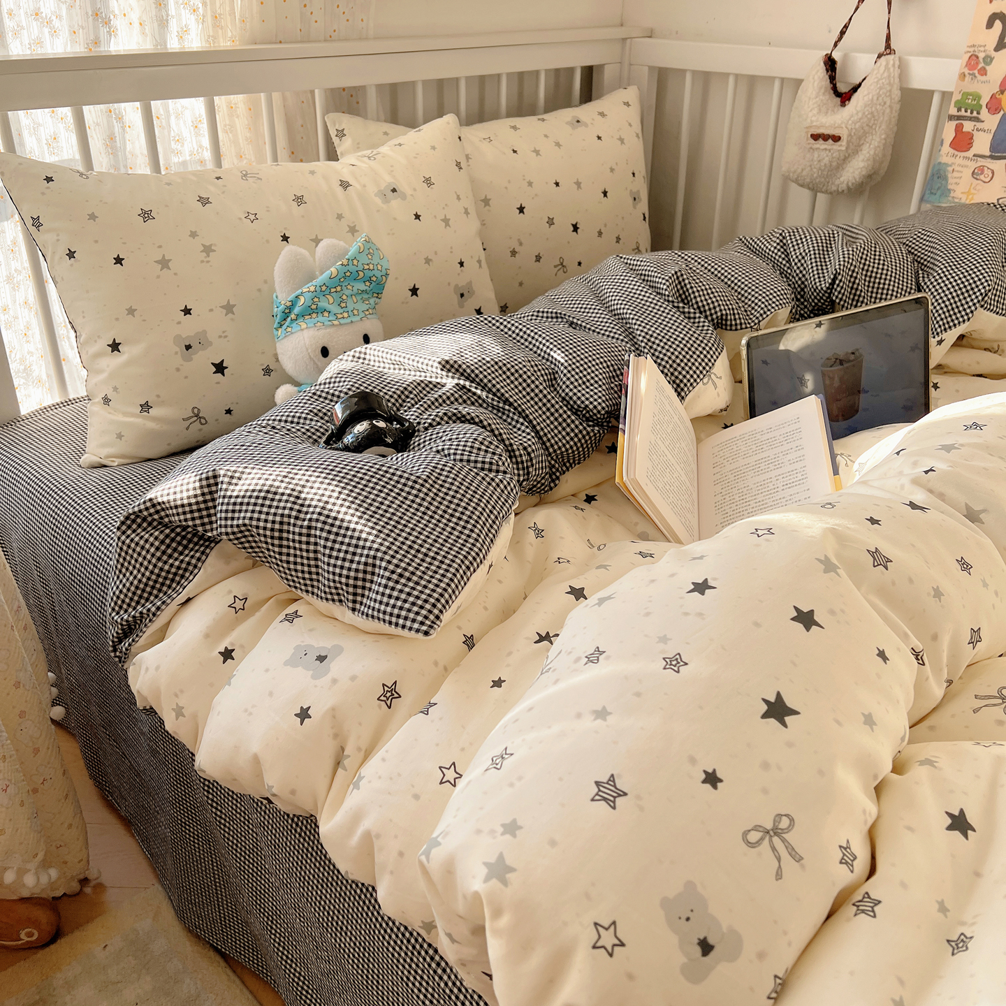 桃喜 2026春夏新品全棉卡通学生三件套四件套 黑白星星熊