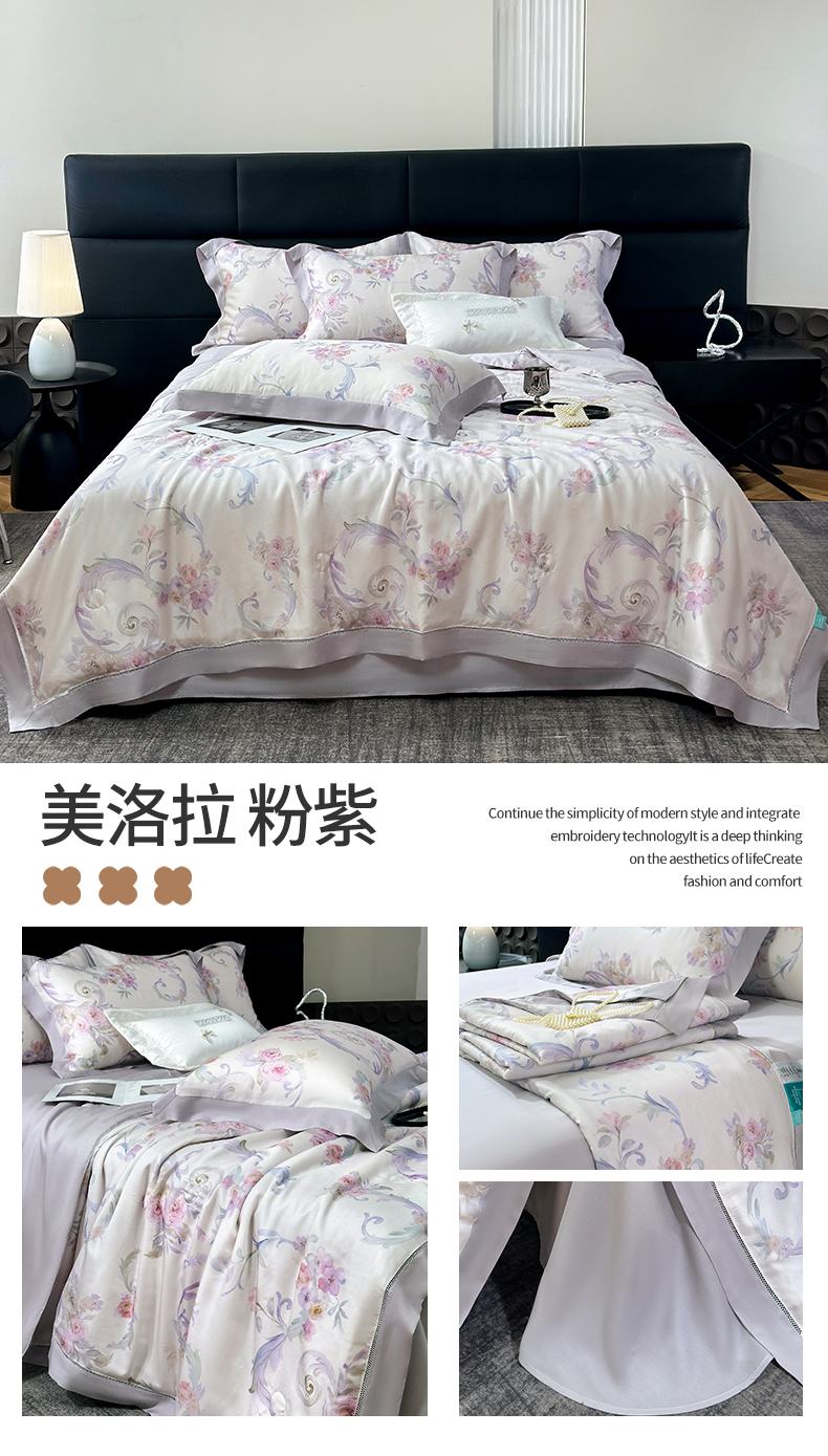 (总)朵希曼 2026新款轻奢全棉提花系列四件套,极简深蓝,南枝-蓝,知画-灰,织梦 紫