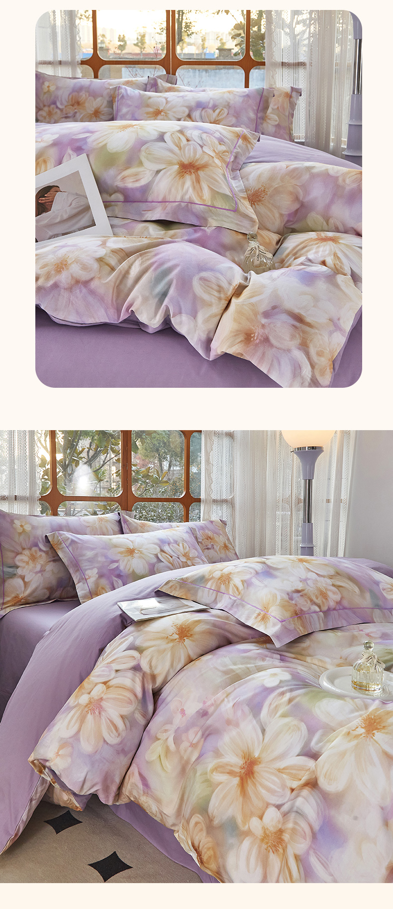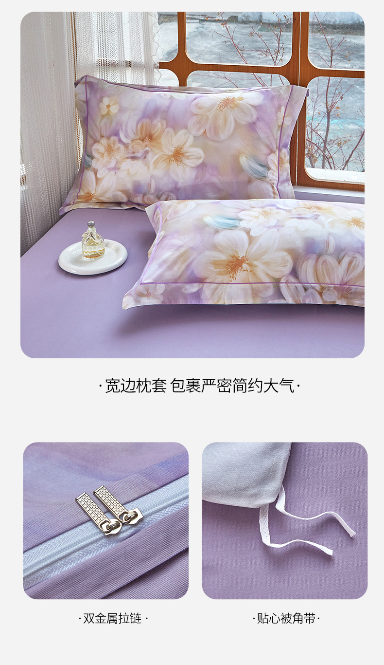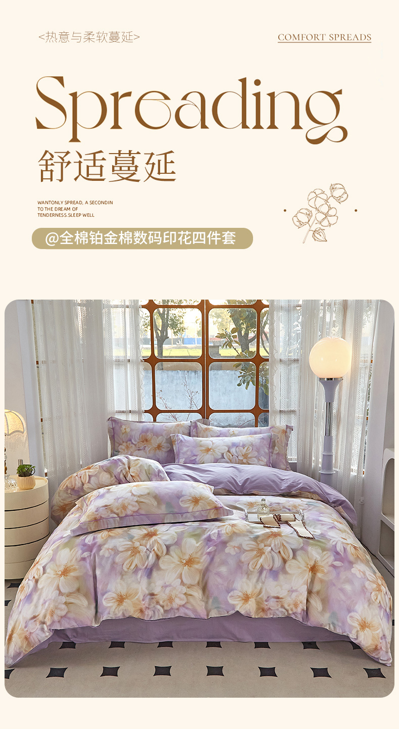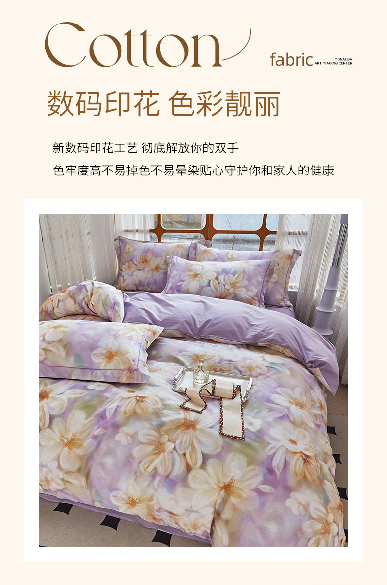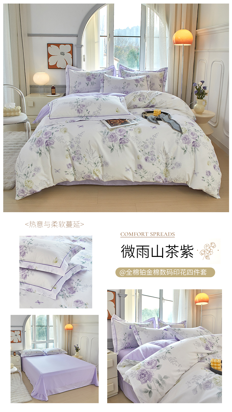 (总)启航家居 2025新款全棉铂金棉数码印花四件套,风香花倦,花的嫁纱,洛香忆梦绿,暮云春树灰,翩若惊鸿粉,普罗旺斯紫,新塞纳舞曲红,新塞纳舞曲紫