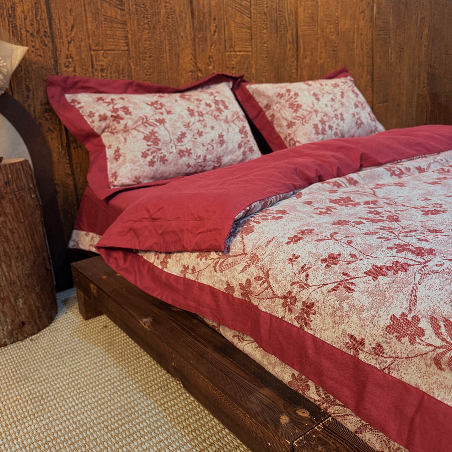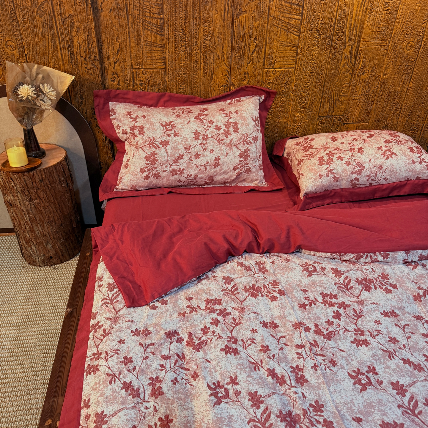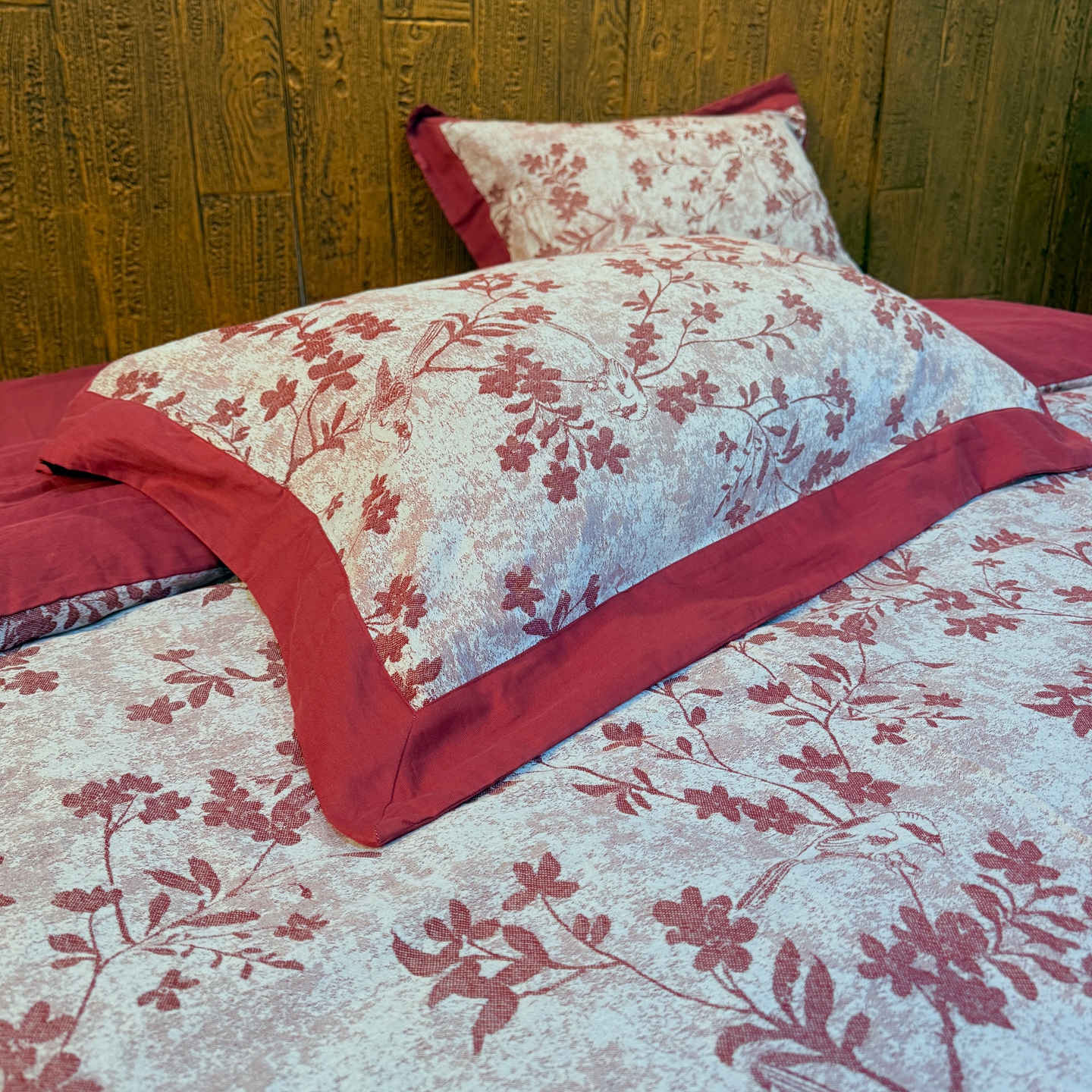 (总)双层纱家居 2026新款全棉纯棉色织提花拼角飞边款四件套-郁金花园正红,郁金花园正红