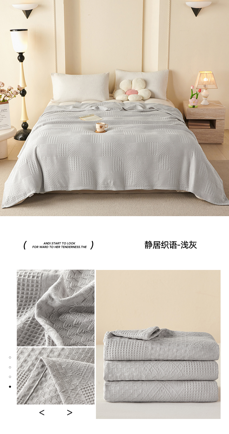 (总)悦然毛巾被 2026新款华夫格全棉纱布毛巾被夏凉被空调被,静居织语豆纱,静居织语咖啡,静居织语浅灰,静居织语浅绿,静居织语杏白