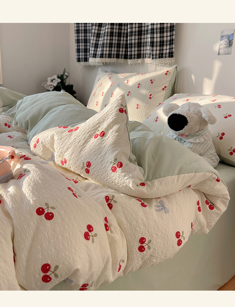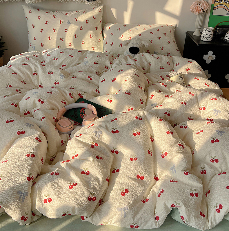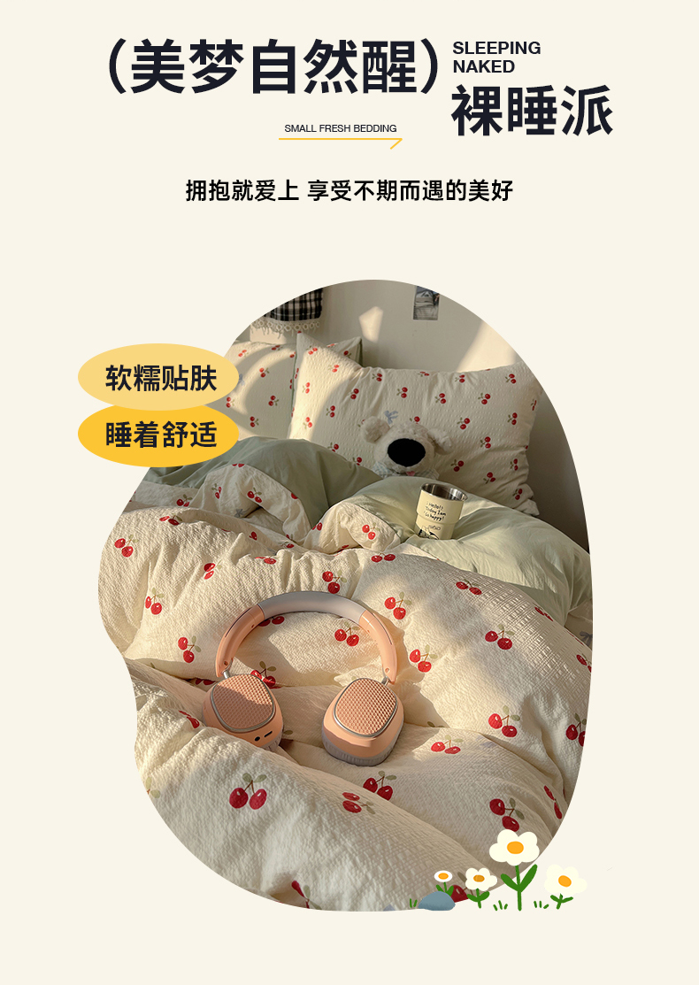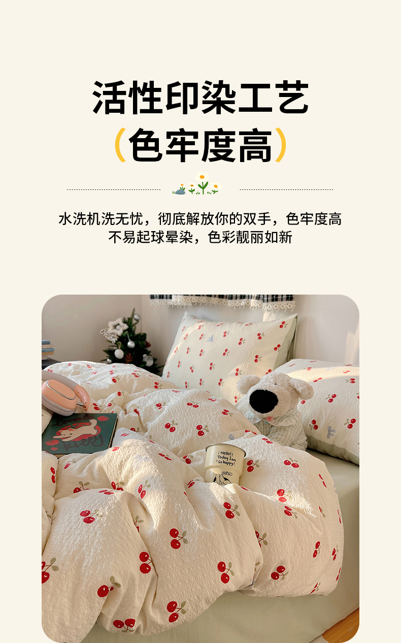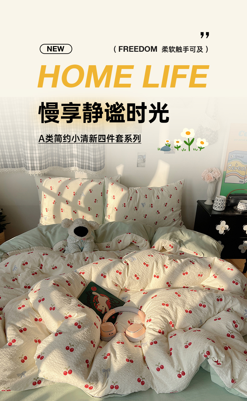 当前位置: 91家纺网 > 商品网购 > 床品套件 > 四件套 > 其它四件套 > 沐芷 2026 高克重110g泡芙棉四件套A类床上用品被套宿舍床单三件套【提供买家秀】 樱桃笔记