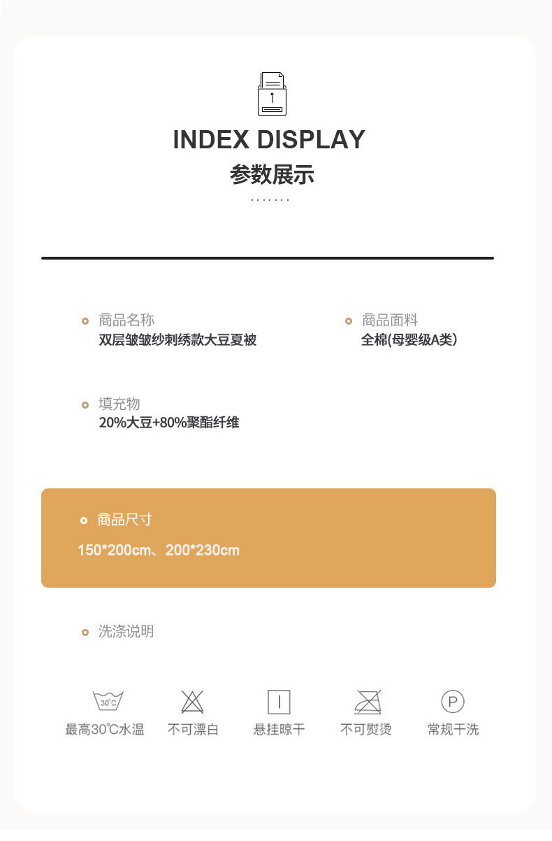 • 适用季节: 空调被/夏凉被