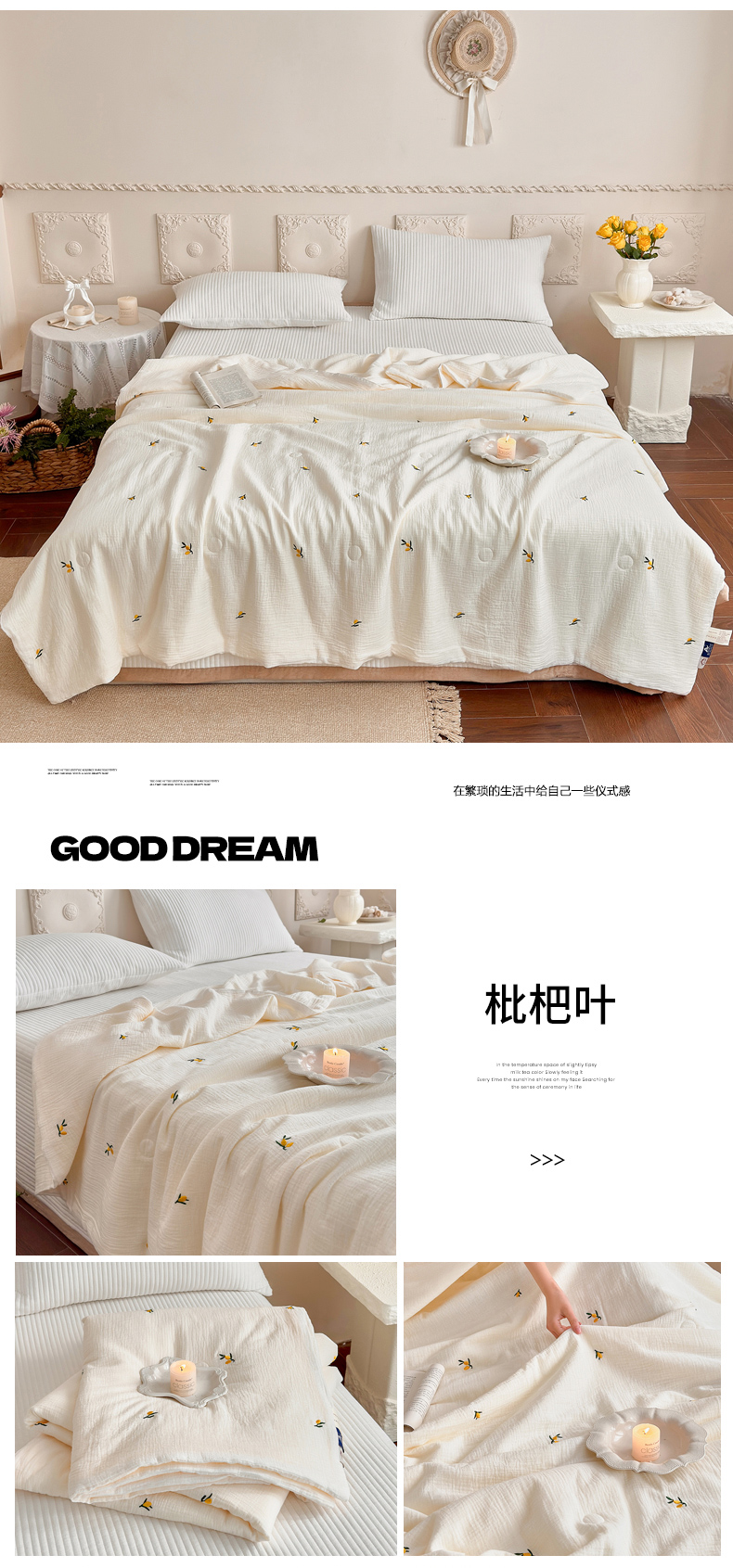 • 91家纺网 家纺一手货源 找家纺 (总)木楌家居 2026新款全棉皱皱纱刺绣款夏被床盖四件套,蓓蕾,蝴蝶结,领结兔,枇杷叶,三叶草,小飞象,小玫瑰,小樱桃,星眠,幸运熊,云裳,枝意,组合图仅供参考不可下单