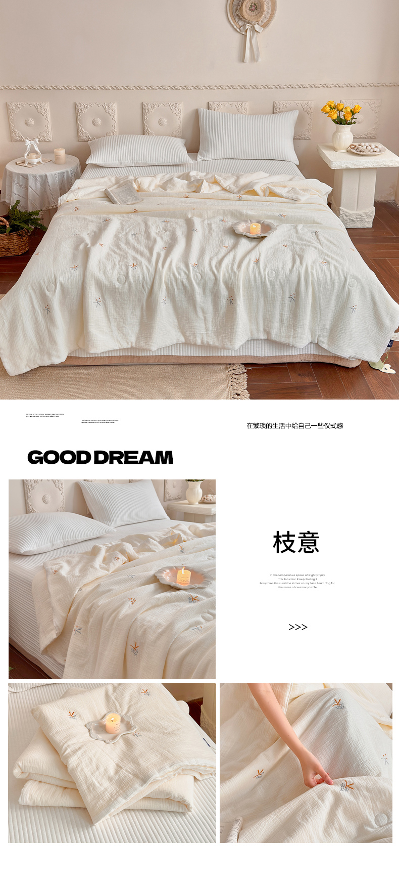 (总)木楌家居 2026新款棉麻皱皱纱刺绣款夏被-棉野序章系列,组合图,花野漫夏,墨绘花影,暖咖花叙,浅草风吟