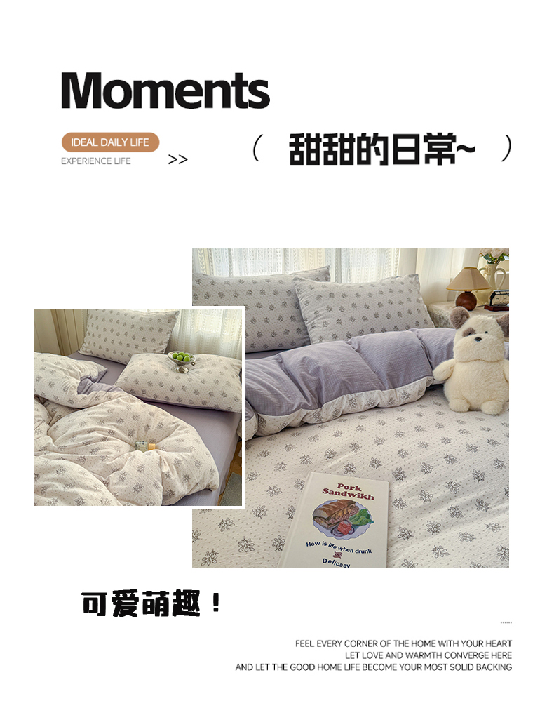 (总)艾特你 2026新款针织提花双层纱全棉纯棉蕾丝花边四件套,软萌可可,繁花,花田紫,蓝萱,墨蓝,奶油芝士,苹果星人,秋之恋,藤蔓,甜心猫咪,甜心木马,乌梅子酱,夏之物语,薰衣草,阳光花絮,枝芽