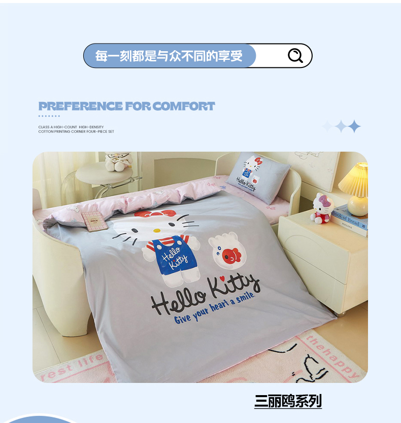 (总)蘭菲家纺 2026新款幼儿园儿童三丽欧系列多件套,必爱乐奶茶,波点KT,车站KT,大杯奶茶,逛街狗,精致狗狗,可爱KT灰,快乐小库,快乐休假,露营快乐,美乐必爱,轻松美乐蒂,涂鸦KT,夏日快乐,小库儿,小库故事