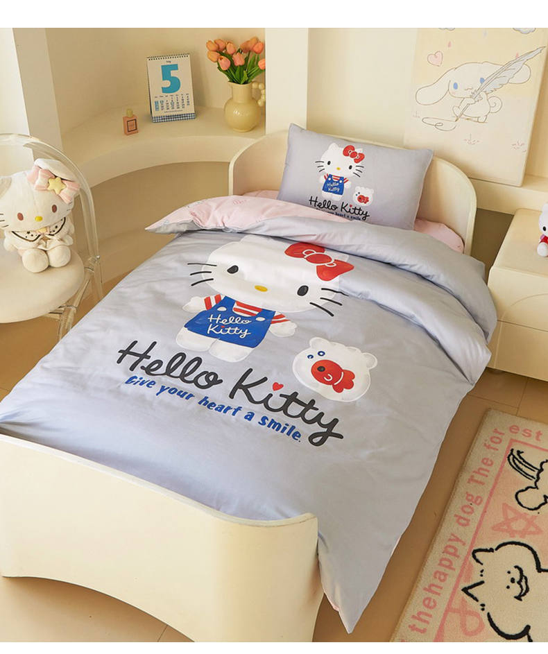 商品名称:蘭菲家纺 2026新款幼儿园儿童三丽欧系列多件套 可爱KT灰