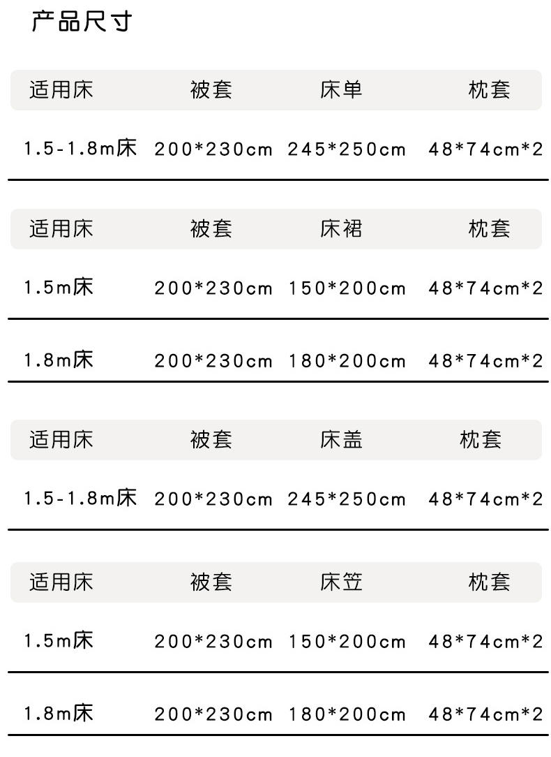 【床笠款】1.8四件套-被套200x230 | ¥88.00 |