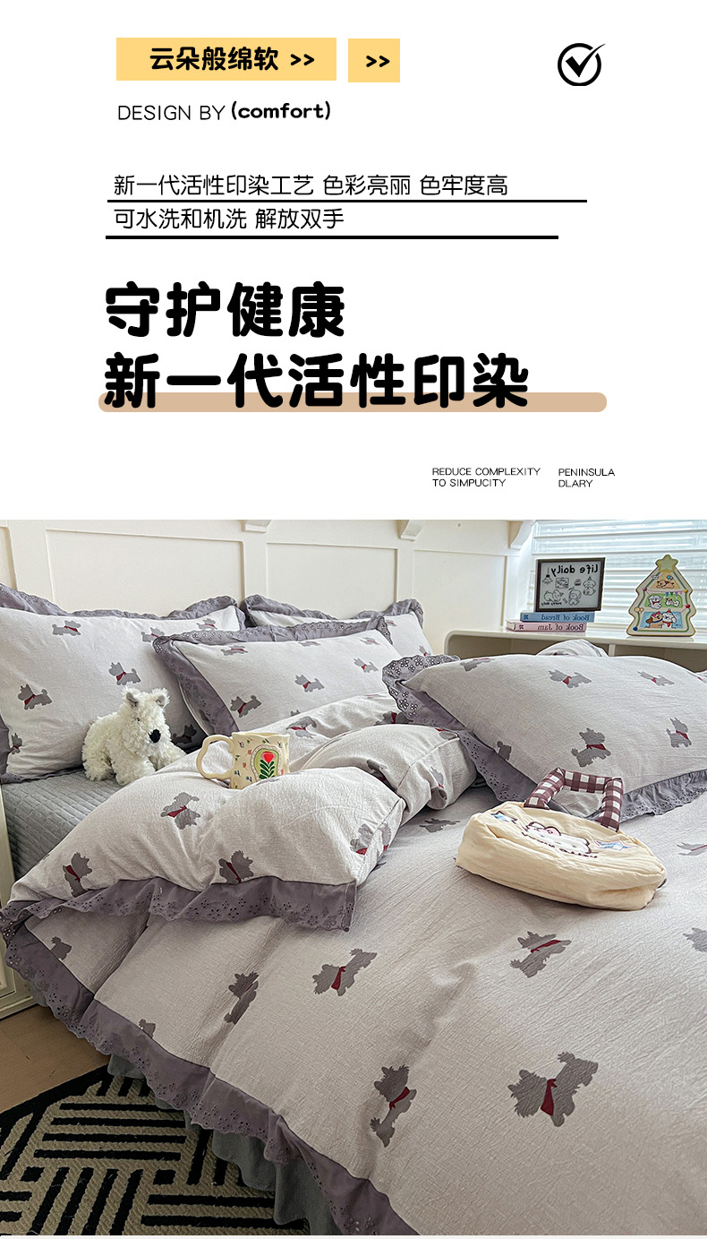 当前位置: 91家纺网 > 商品网购 > 床品套件 > 四件套 > 全棉普通四件套 > 富米莱(原臻工厂) 2026新款高克重爆款法式全棉纯棉花边四季款加厚色织提花床盖床裙四件套 提花-童梦园