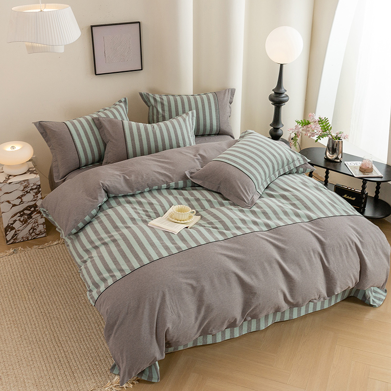 商品名称:喜四方 2026新款100%全棉纯棉色织水洗棉花边工艺款四件套-系列二 暮川(兰)