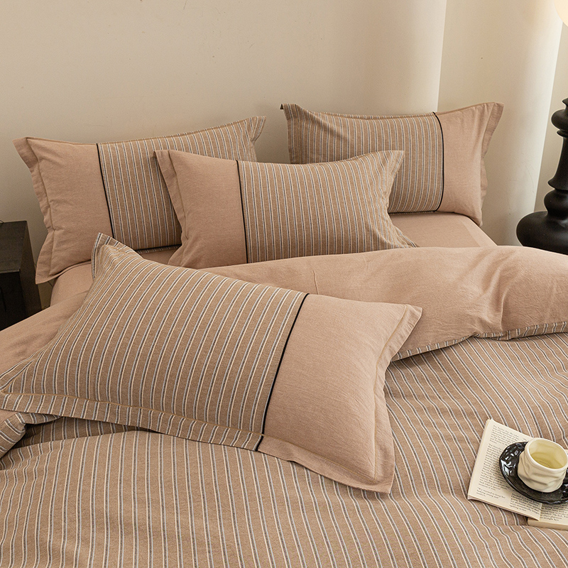 (总)喜四方 2026新款100%全棉纯棉色织水洗棉花边工艺款四件套-系列二,马克-兰,暮川(咖),暮川(兰)