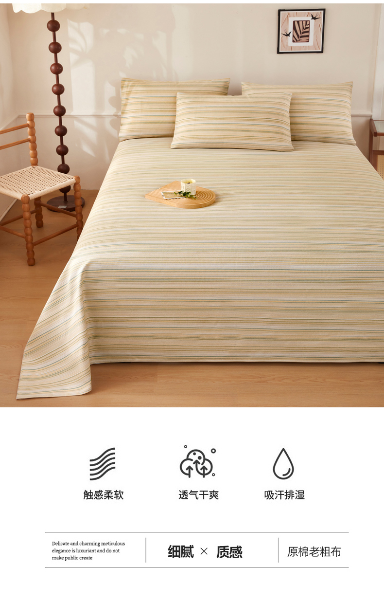 当前位置: 91家纺网 > 商品网购 > 床品套件 > 三件套 > 美丽折家纺 2026春夏新款原棉老粗布单床单床单单件床单三件套 浅禾