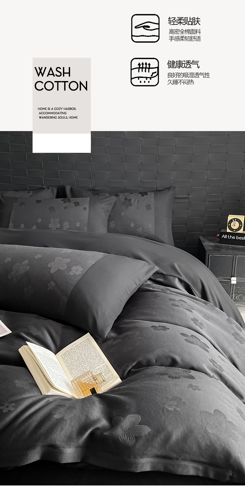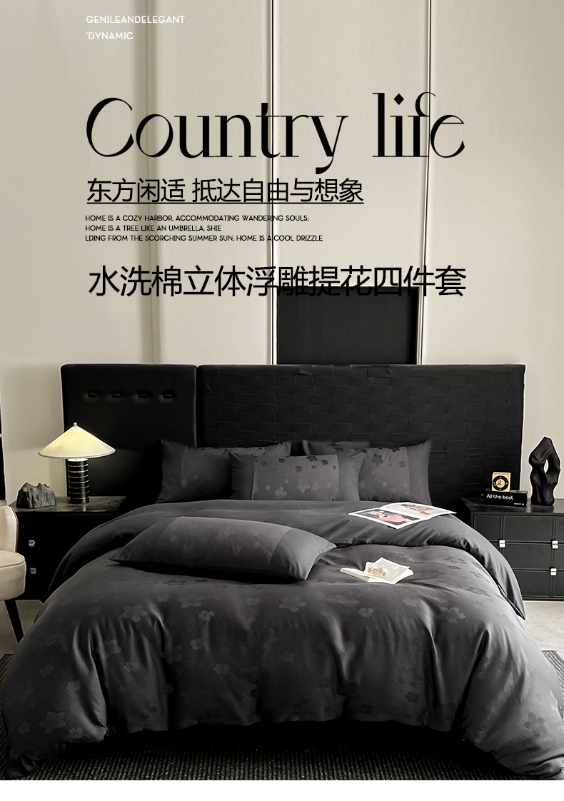 当前位置: 91家纺网 > 商品网购 > 床品套件 > 四件套 > 水洗棉四件套 > 你好美丽 2026新款柔软水洗棉立体浮雕提花四件套-繁花系列 繁花黑