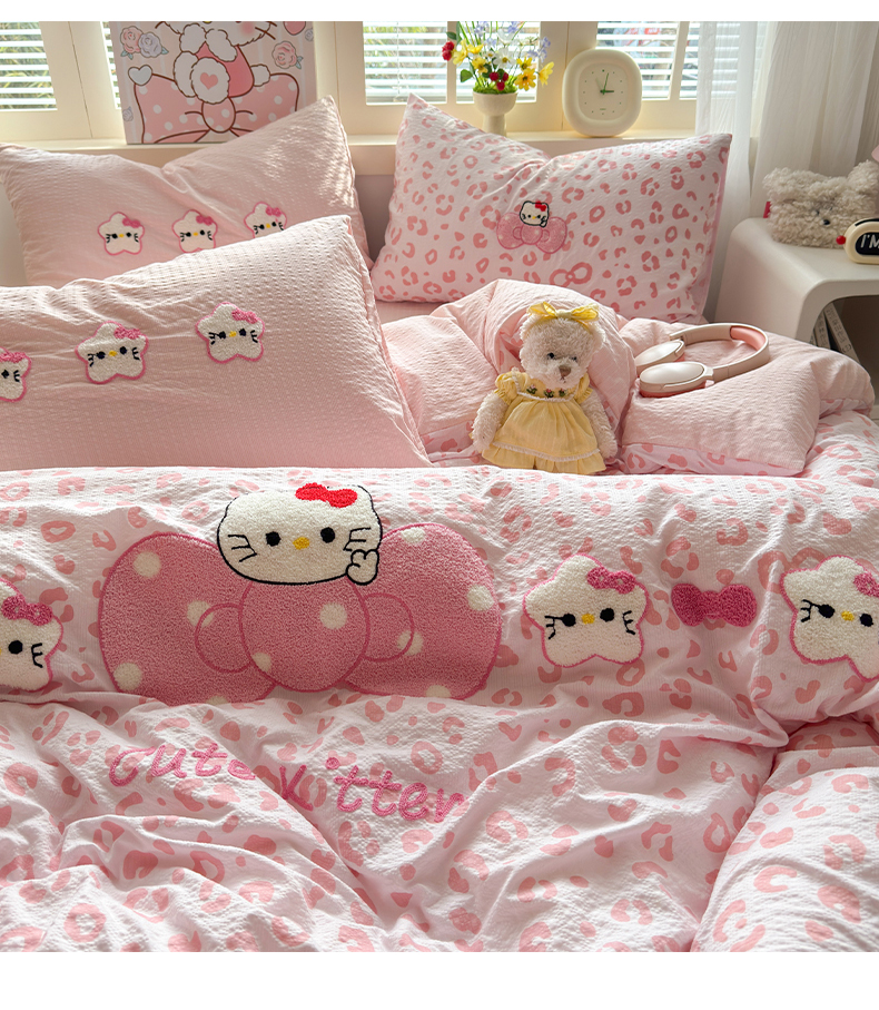 (总)优承佳生活馆 2026年新款卡通小清新风格高克重超柔软糯泡芙双层纱面料三件套四件套单被套系列,hello粉凯蒂,芭比兔,春日木马,花间兔语,咖色凯蒂,满满,萌萌狗,女孩日常,千禧马,浅陌,甜猫派对,甜心,甜心草莓兔,童趣星空,星星kt,紫蔷薇