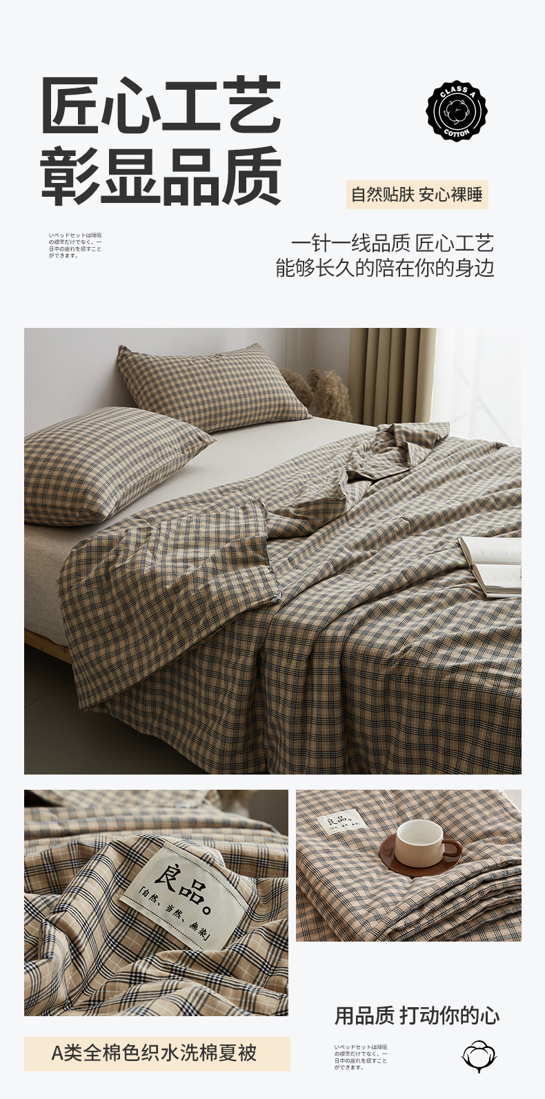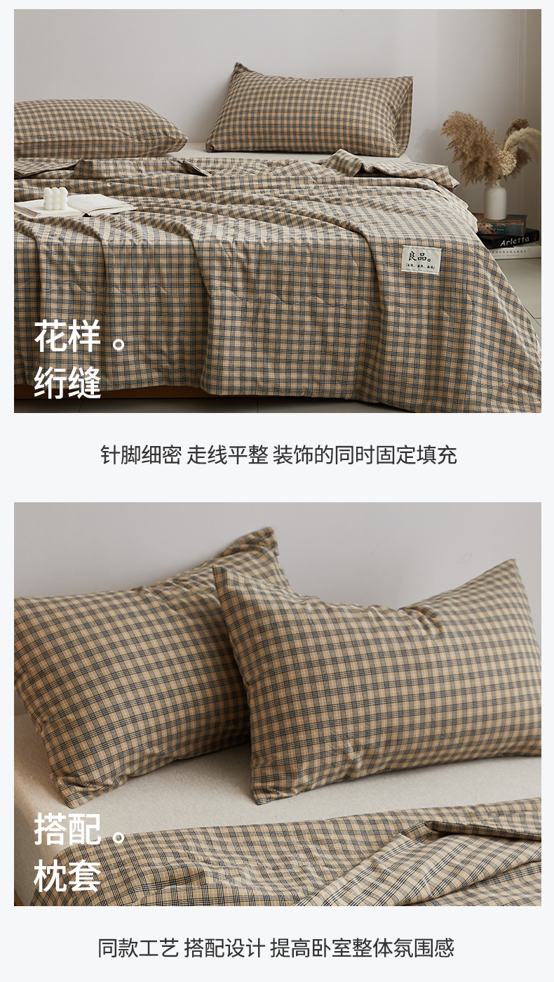 (总)尊妙被业 2026全棉色织水洗全棉棉花夏被 被子被芯 夏被四件套(格子款),贝拉咖,爱格,爱格兰,爱格绿,潮格白,粉小格,咖小格,蓝小格,绿小格