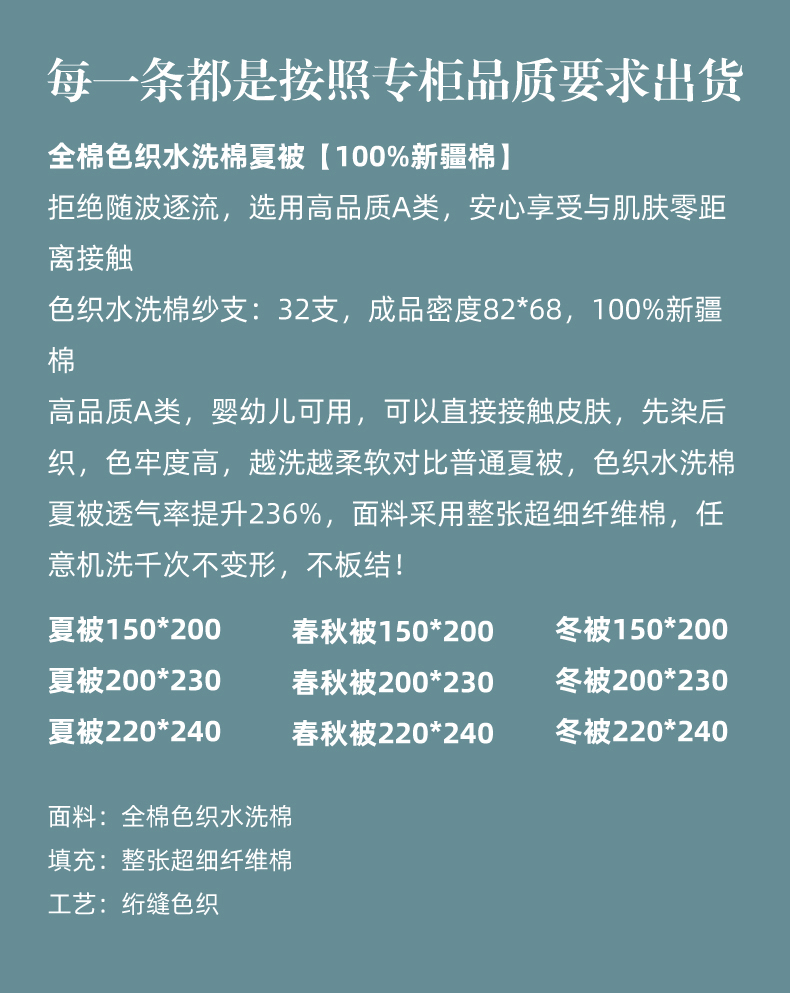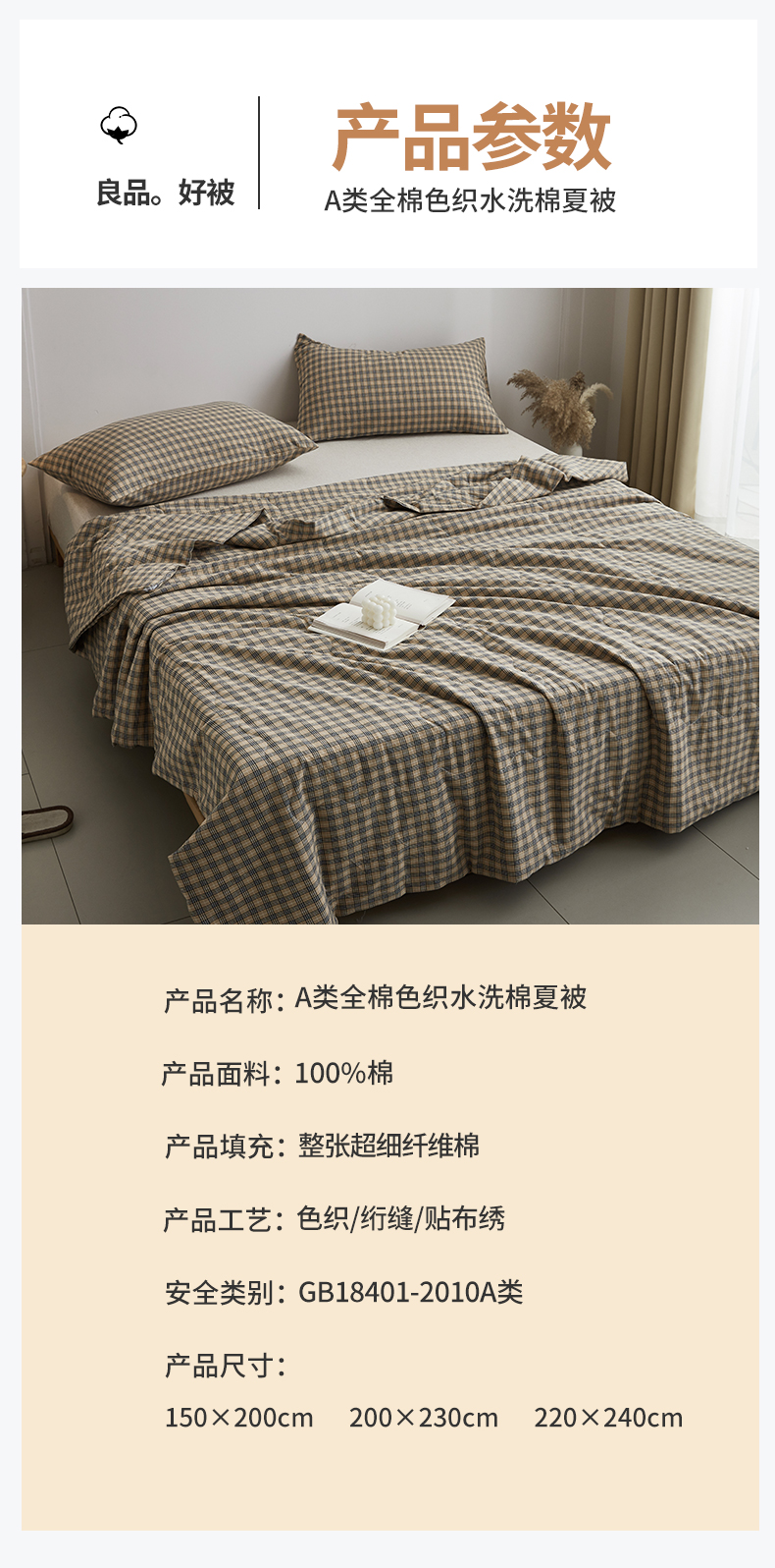 商品名称:(总)尊妙被业 2026新款全棉色织水洗棉春秋被夏被-叠拍