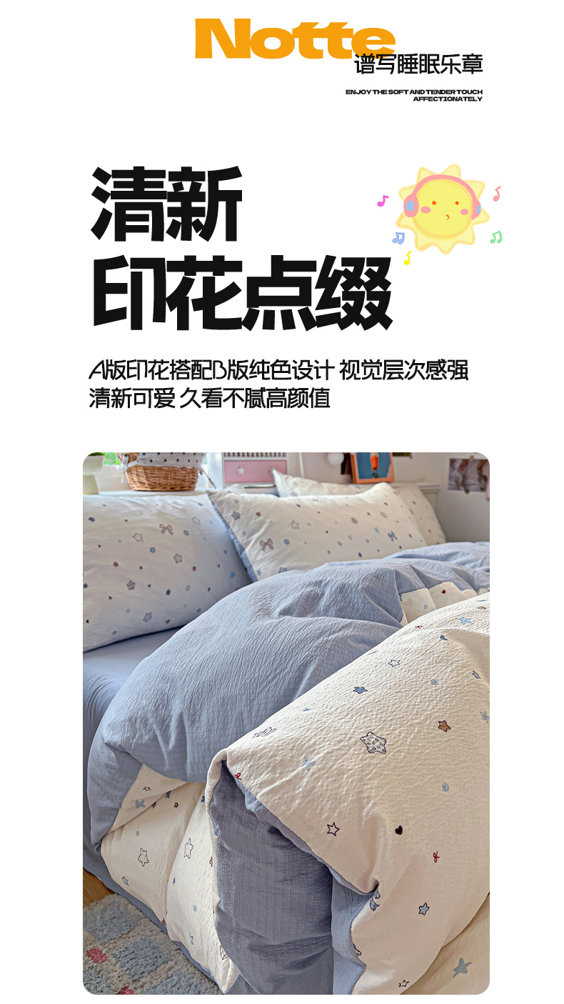 当前位置: 91家纺网 > 商品网购 > 床品套件 > 四件套 > 双层纱四件套 > N先生+V 13814689556 发大图/买家秀 2026春夏新款泡芙云感双层纱四件套 蓝色星空