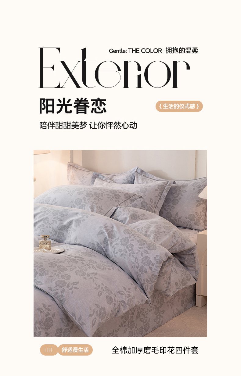 (总)磨毛世家家纺 2025新款全棉四件套纯棉加厚生态磨毛套件,北美风情-灰,布列塔-粉红,布列塔-幻影灰,布列塔-浅咖,布列塔-浅紫,布列塔-天空蓝,春和景明-粉,春和景明-蓝,粉色,花之盛宴,花枝漫漫-灰,灰色,拉布布-米,洛丽塔-绿,玫瑰物语-灰,梦初雨-蓝,南瓜甜心-灰,苹果绿,浅咖色,浅笑嫣然-灰,浅紫,天空蓝,向云端-粉,小乔人家-黄,亚马逊-灰,瑶花知-蓝,叶韵-蓝,银杏叶-绿,云雨轩-粉,珍妮花园-蓝,北海道-咖,北海道-蓝,丰收季节,飘摇-蓝,时尚都市-蓝