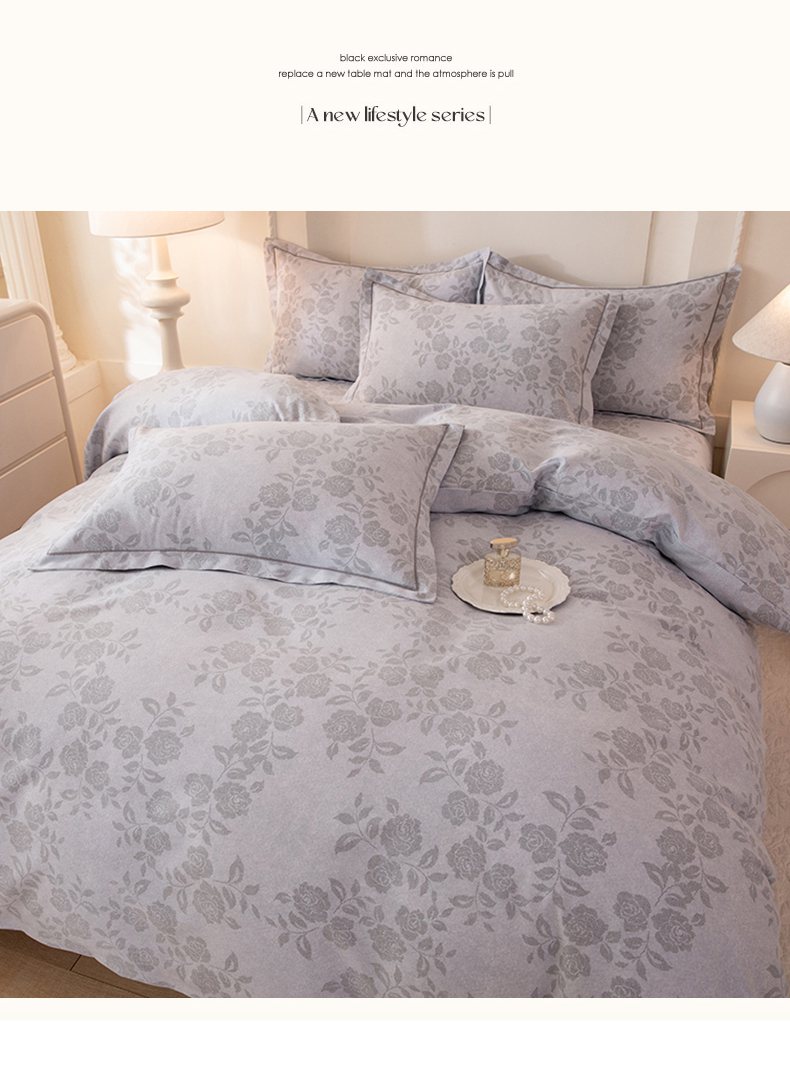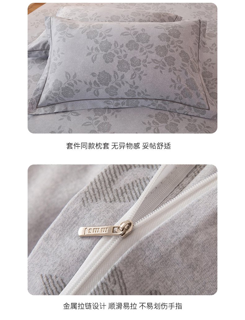 商品名称:磨毛世家家纺 2026新款铂金磨毛纯棉加厚全棉磨毛四件套 玫瑰之心-灰