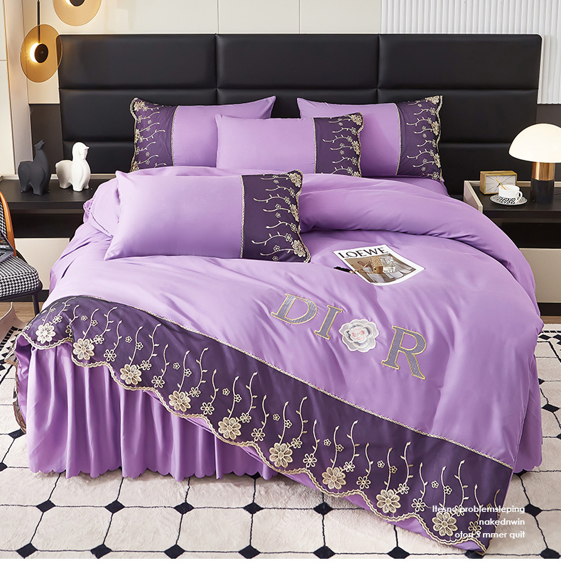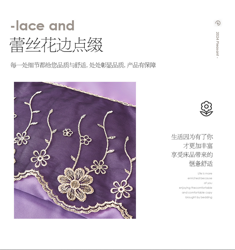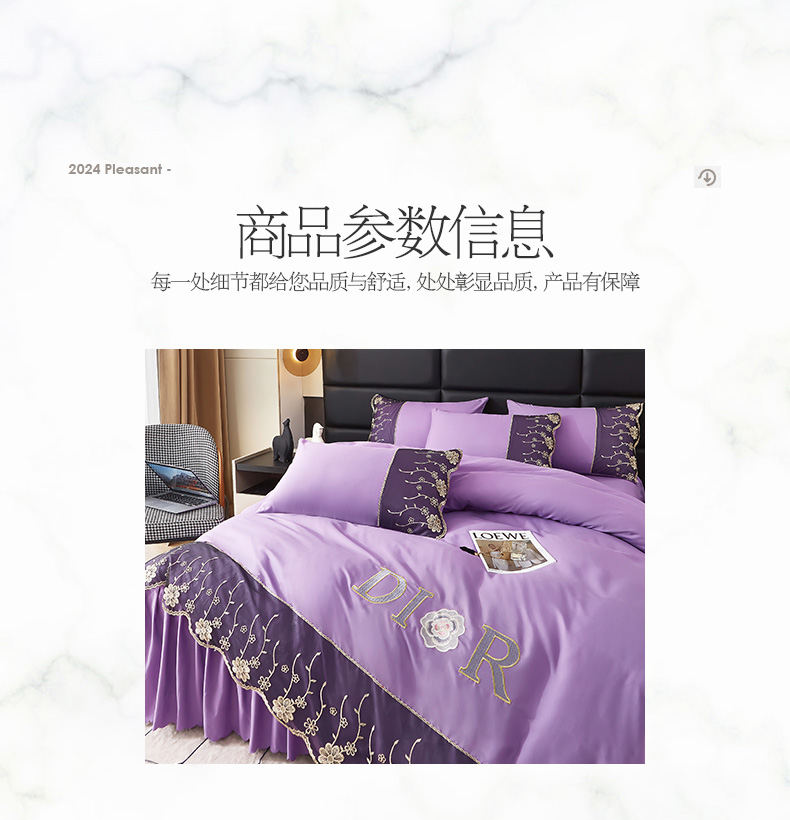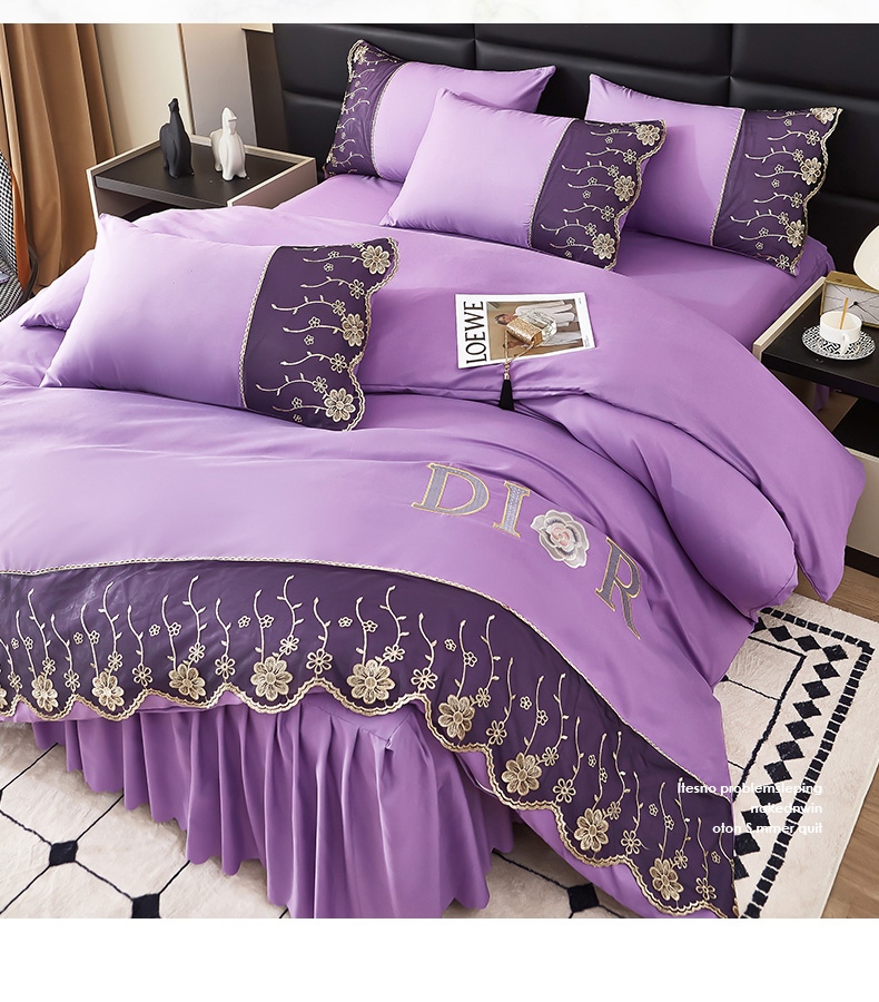 当前位置: 91家纺网 > 商品网购 > 床品套件 > 四件套 > 其它四件套 > 沐珩家纺 2026新款亲肤磨毛蕾丝刺绣床裙四件套-蒂欧系列 蒂欧-江南紫