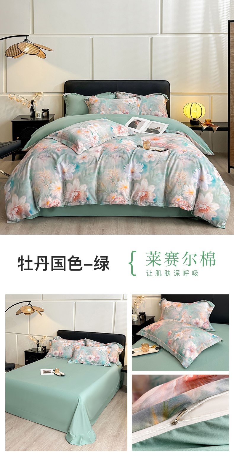 (总)帛美家纺 2026新款天丝棉数码印花四件套,缤纷花韵,芳昕,荷露韵,花海恋人,花拾,花漾时光,梦秋兰,牡丹国色,牡丹国色-绿,云瑾木兰,组合图