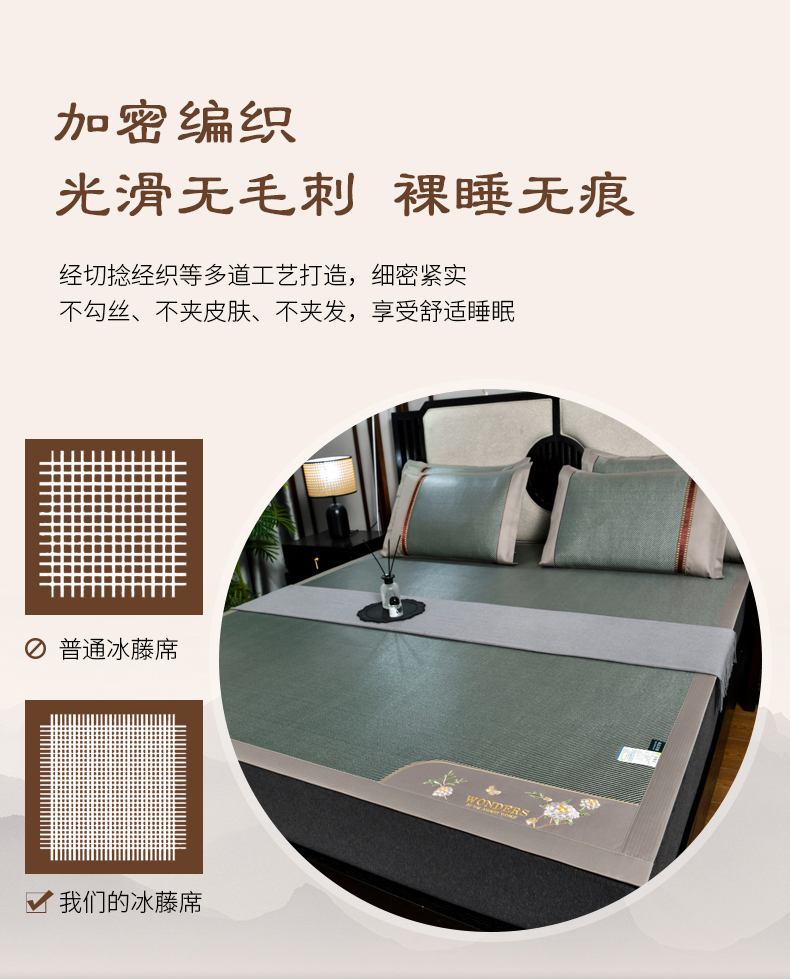 (总)小牛席业2023新款小苍兰清香冰藤席系列凉席竹席冰丝席乳胶席,黑咖,金色,绿色,浅蓝,香槟,银灰