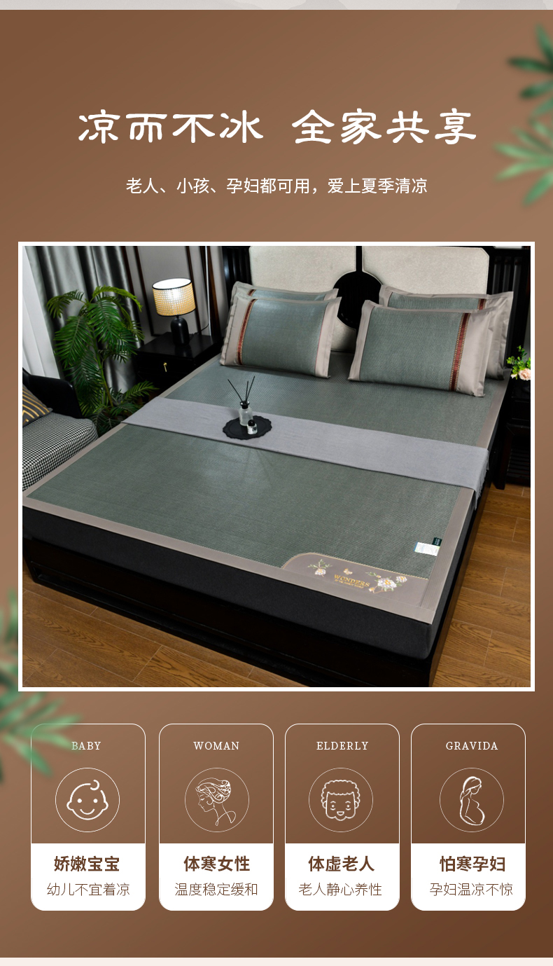 2023新款夏日冰点-冰藤双面席凉席藤席竹席冰丝席乳胶席,咖色,蓝色,绿色,香槟