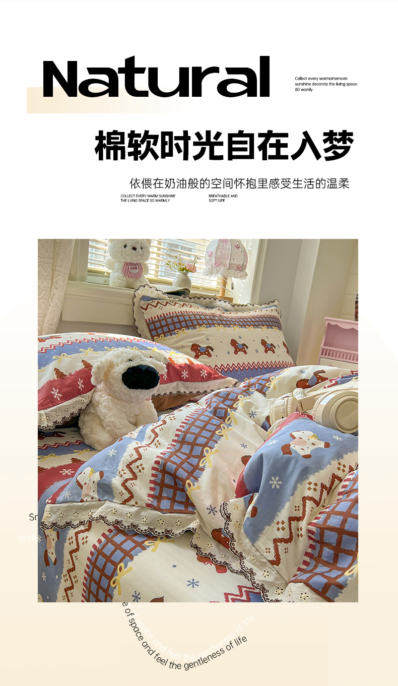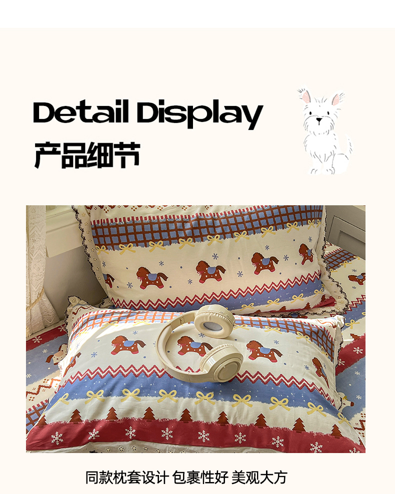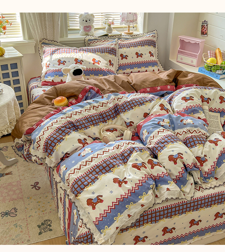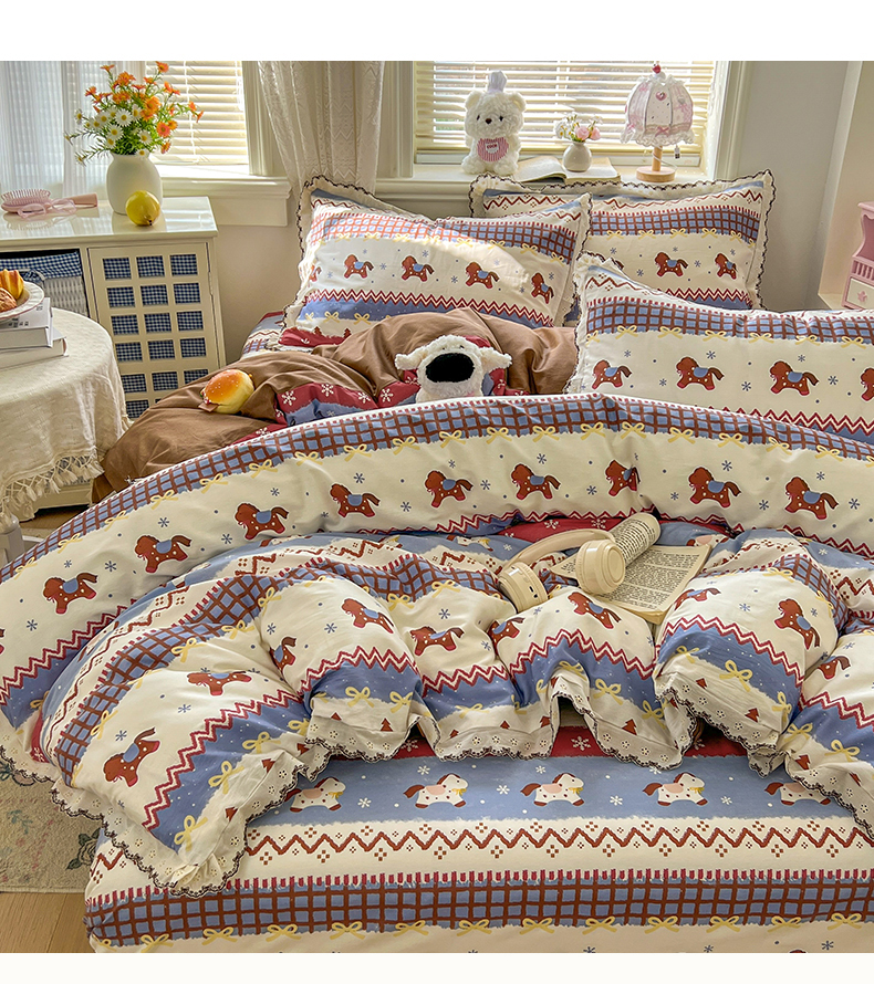当前位置: 91家纺网 > 商品网购 > 床品套件 > 四件套 > 全棉普通四件套 > 希诺家居 2026新款费尔岛风全棉纯棉韩式小清新花边四件套 费尔岛梦幻小马