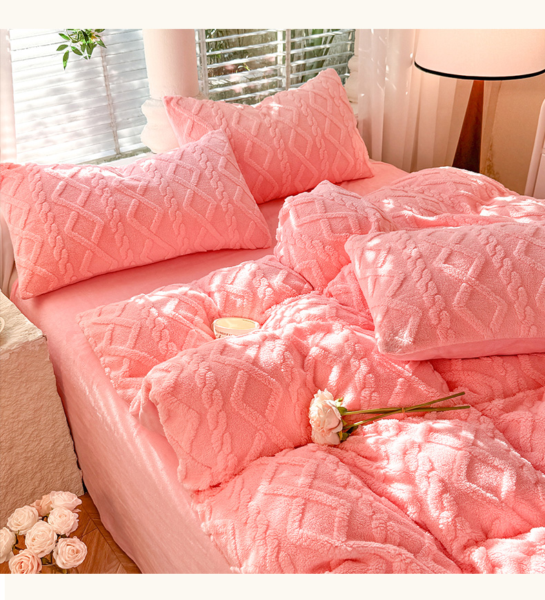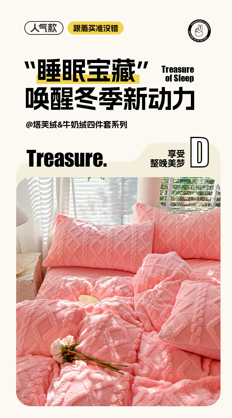 当前位置: 91家纺网 > 商品网购 > 床品套件 > 四件套 > 牛奶绒四件套 > 沐珩家纺 2026新款亲肤舒适加厚保暖塔芙绒牛奶绒系列四件套 樱花粉