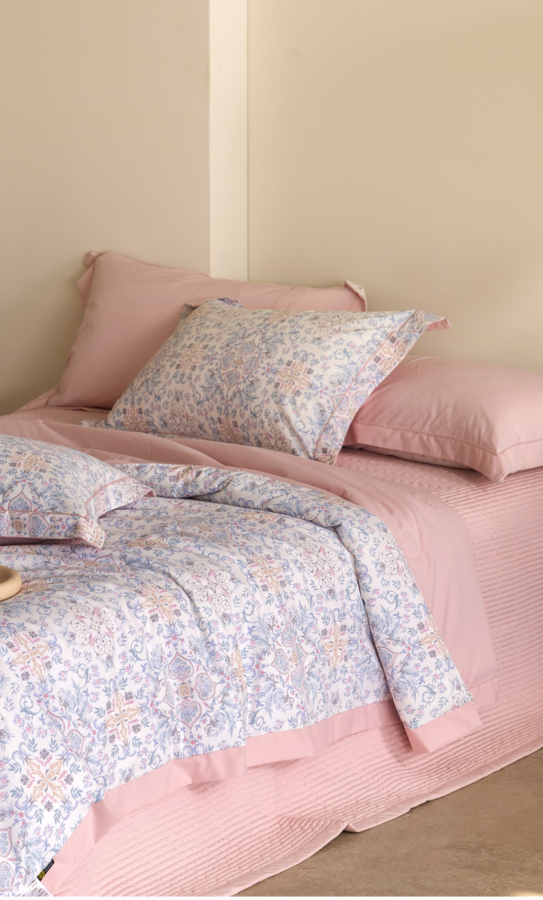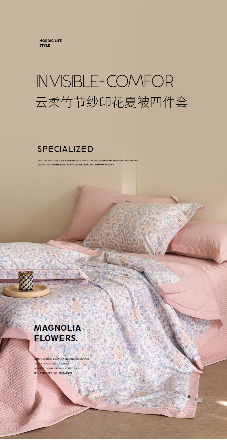 当前位置: 91家纺网 > 商品网购 > 被子 > 夏被 > 立奥被业 2026新品冰丝棉夏被四件套竹节纱夏被四件套 克罗之心-粉