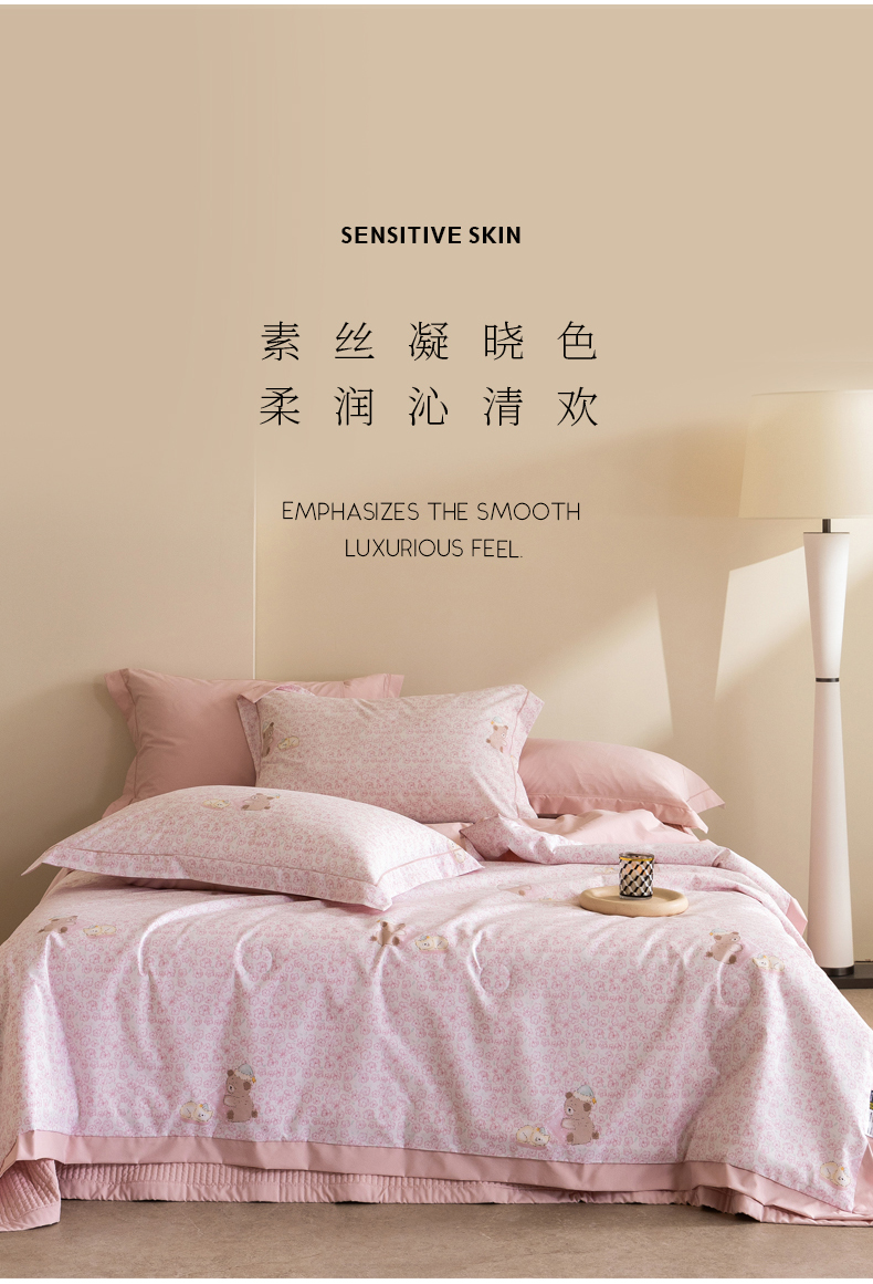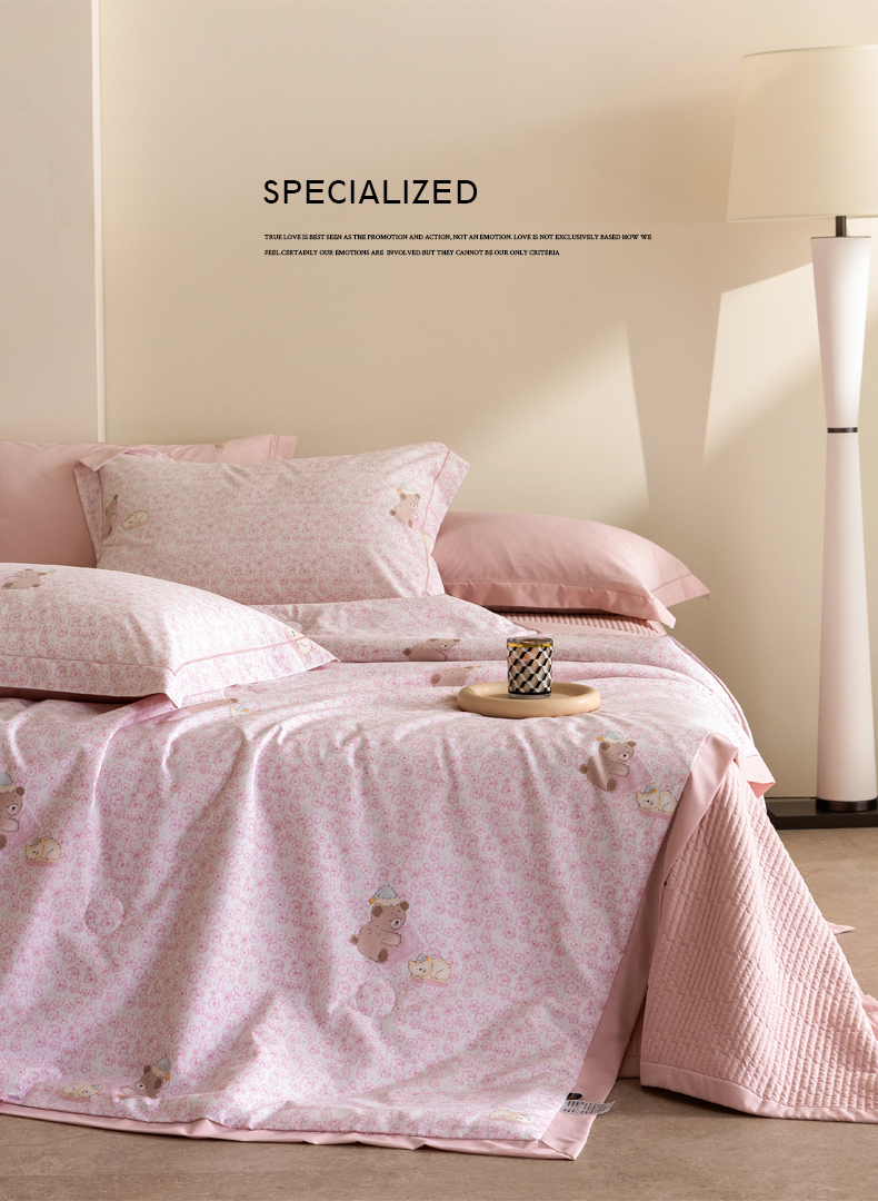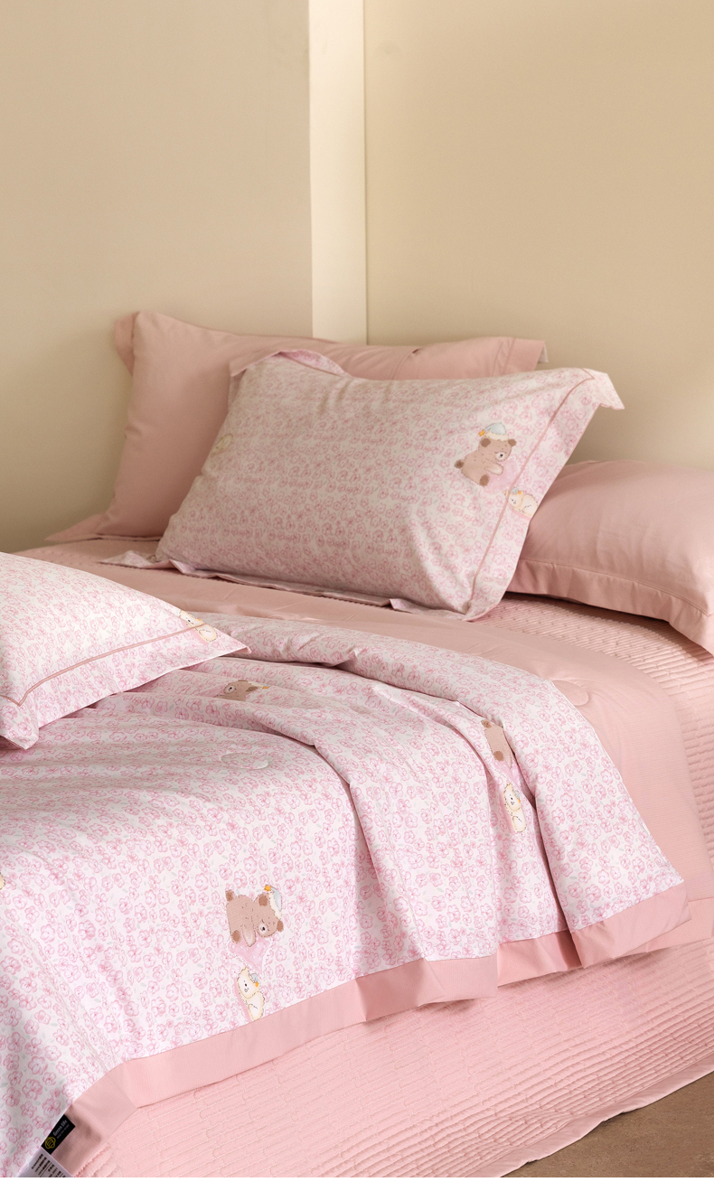 当前位置: 91家纺网 > 商品网购 > 被子 > 夏被 > 立奥被业 2026新品冰丝棉夏被四件套竹节纱夏被四件套 熊可可-粉