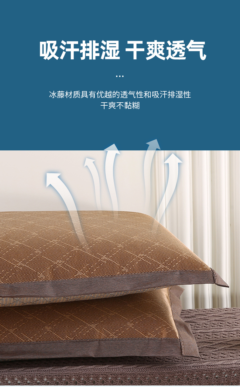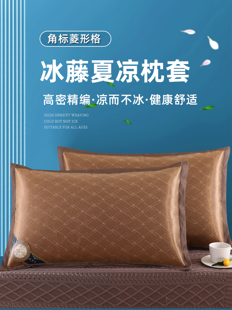 • 91家纺网 家纺一手货源 找家纺 小牛席业 2026新款冰藤枕套A夏凉枕套系列凉枕套夏天枕套冰丝枕套竹枕套藤枕套冰藤枕套 角标菱形格冰藤凉枕套(咖色)