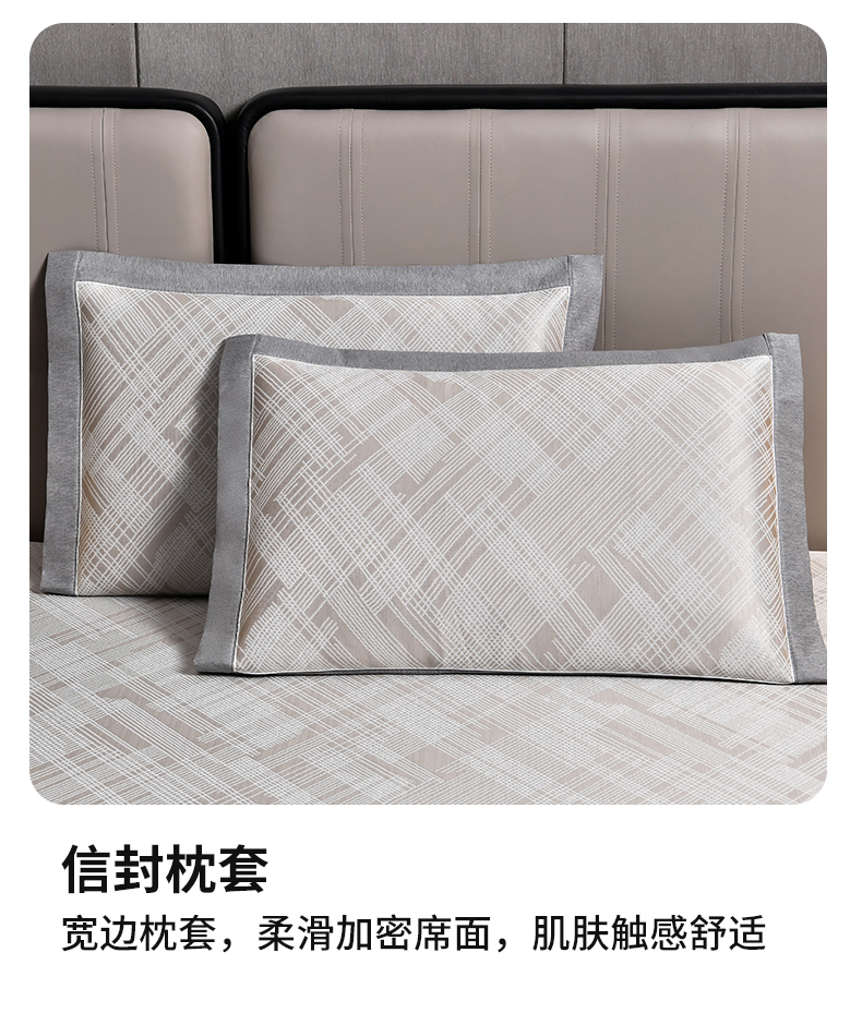 (总)小牛席业 2026新款半定位大提花凉感冰丝席(床笠款)凉席竹席藤席冰藤席乳胶席豆豆席,灰色,粉色,蓝色,香槟