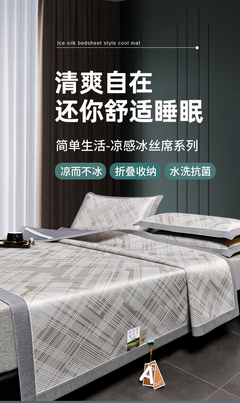 商品名称:小牛席业 2026新款清凉冰丝席凉席席子系列-简单生活 简单生活-灰色