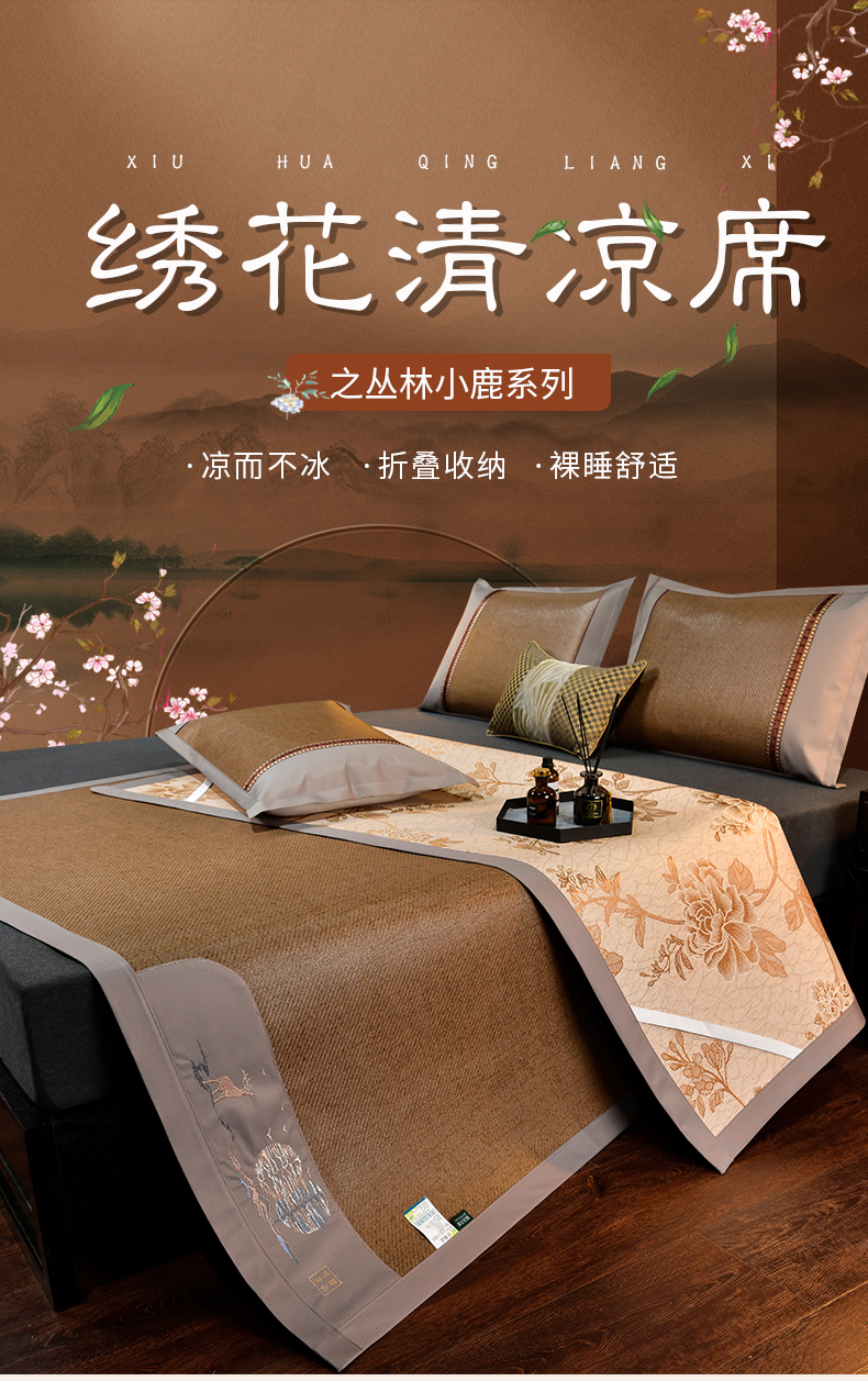 当前位置: 91家纺网 > 商品网购 > 床上用品 > 凉席 > 其他凉席 > 小牛席业 2026新款丛林小鹿绣花清凉-双面席系列 丛林小鹿-绣花清凉席(浅咖)