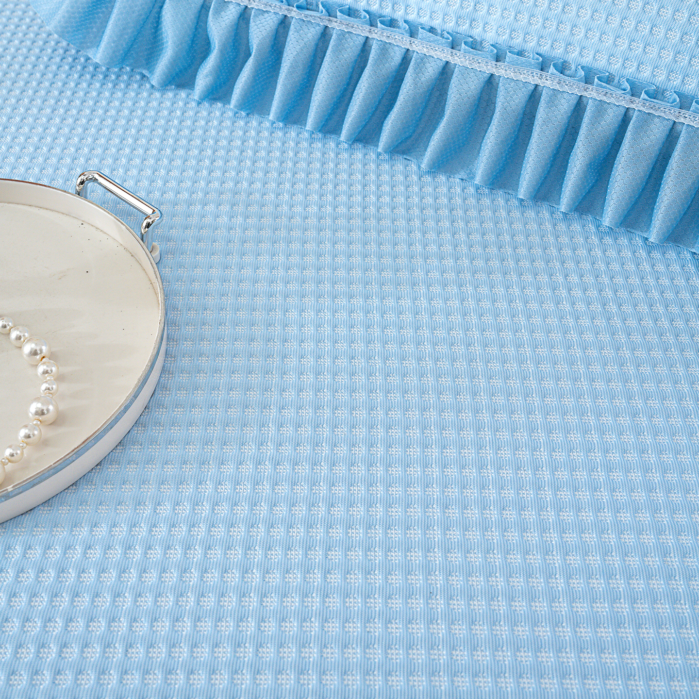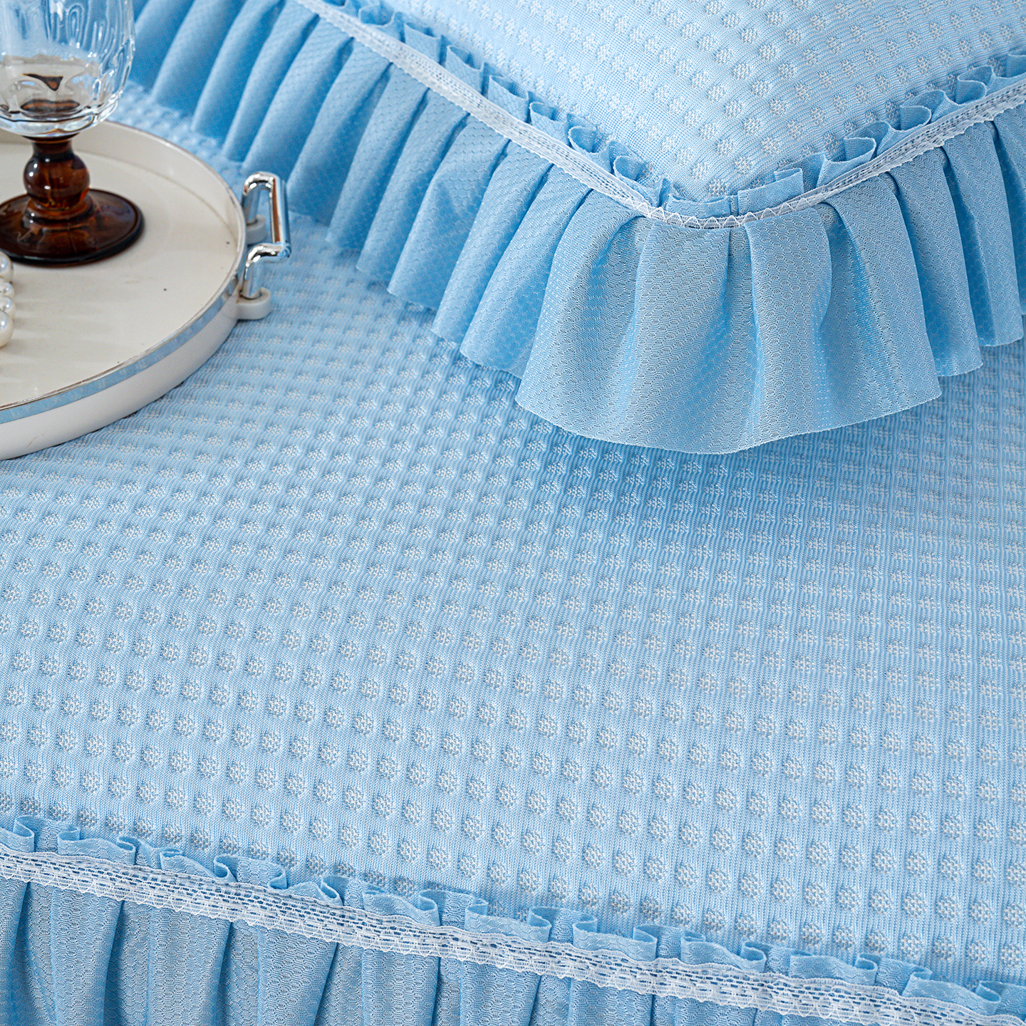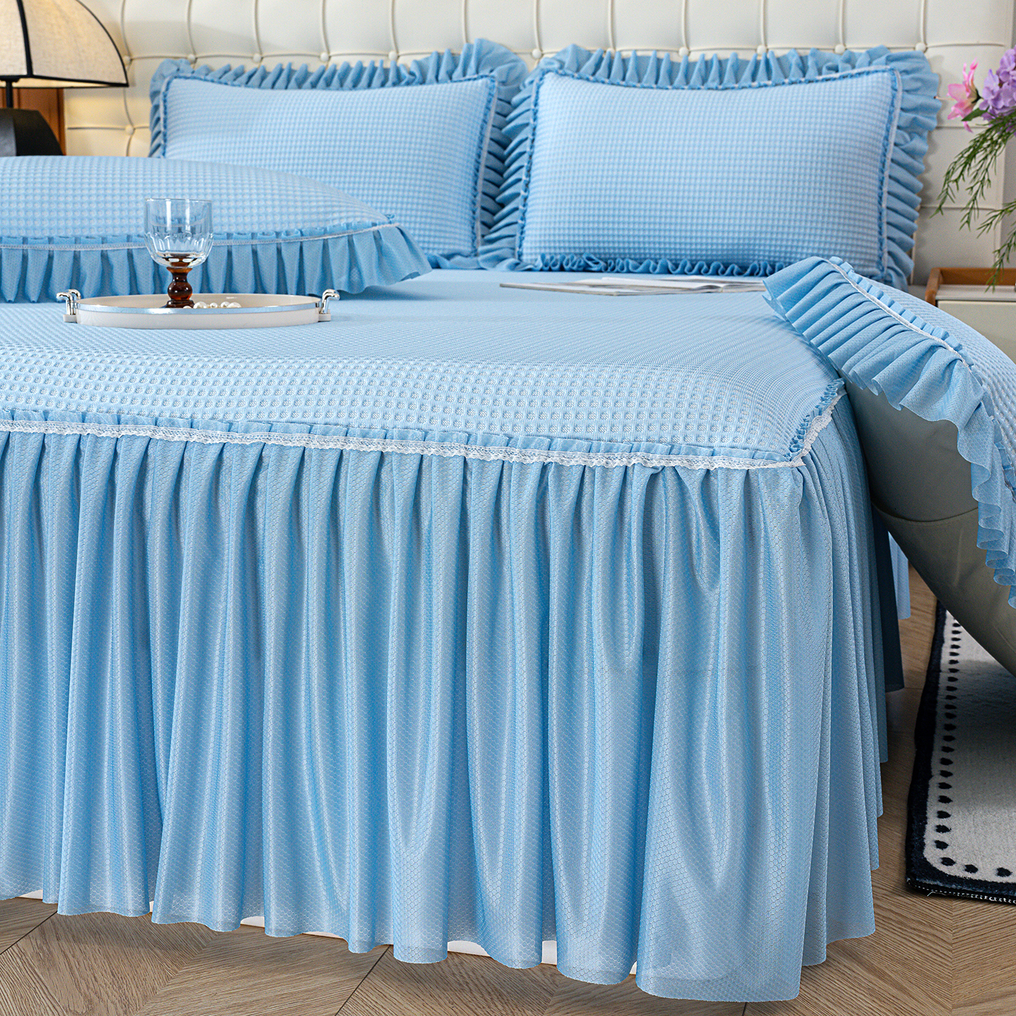 商品名称:归属 2026新款冰豆豆床裙款凉席凉豆豆长裙款凉席 天蓝