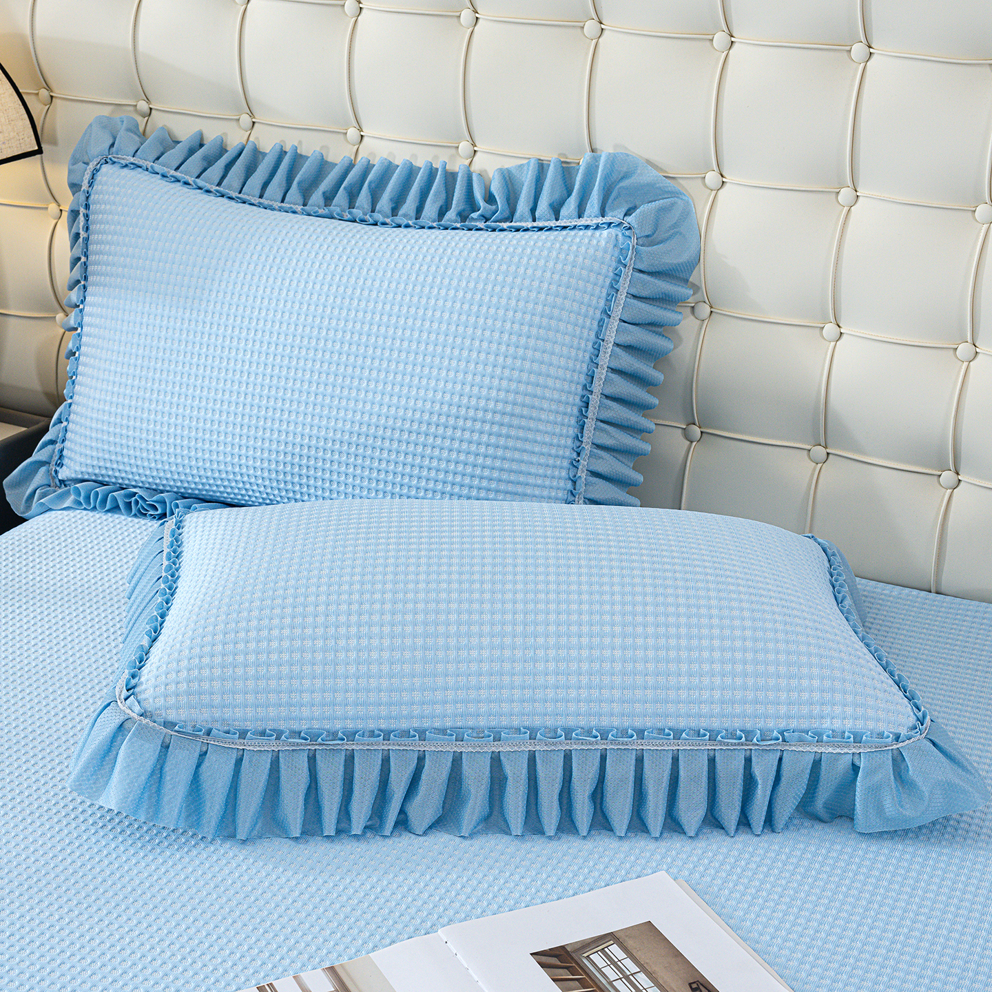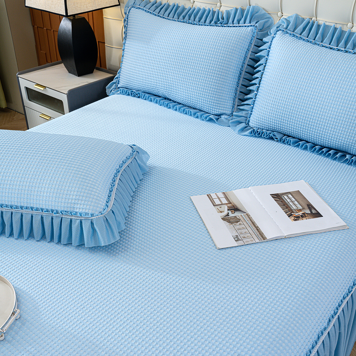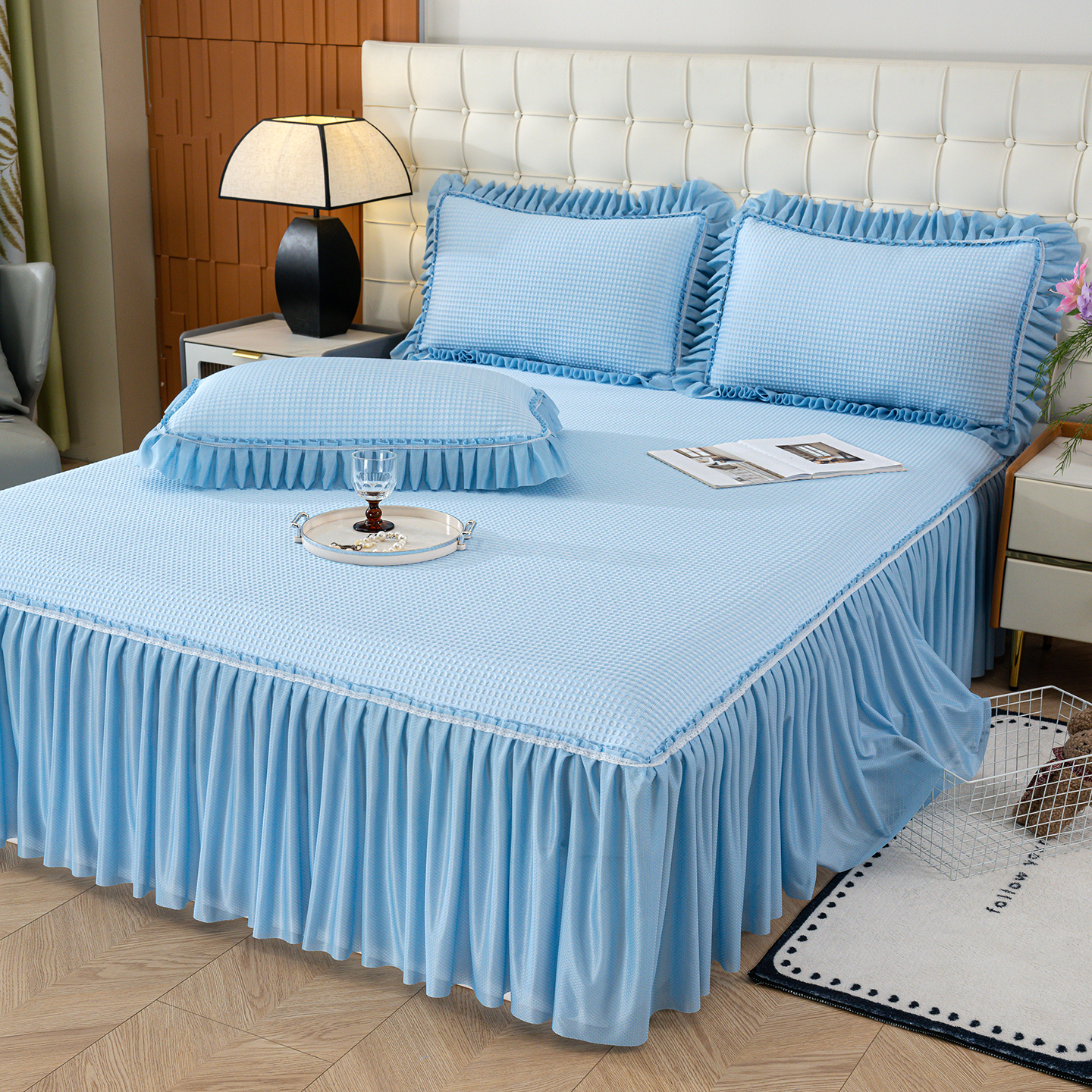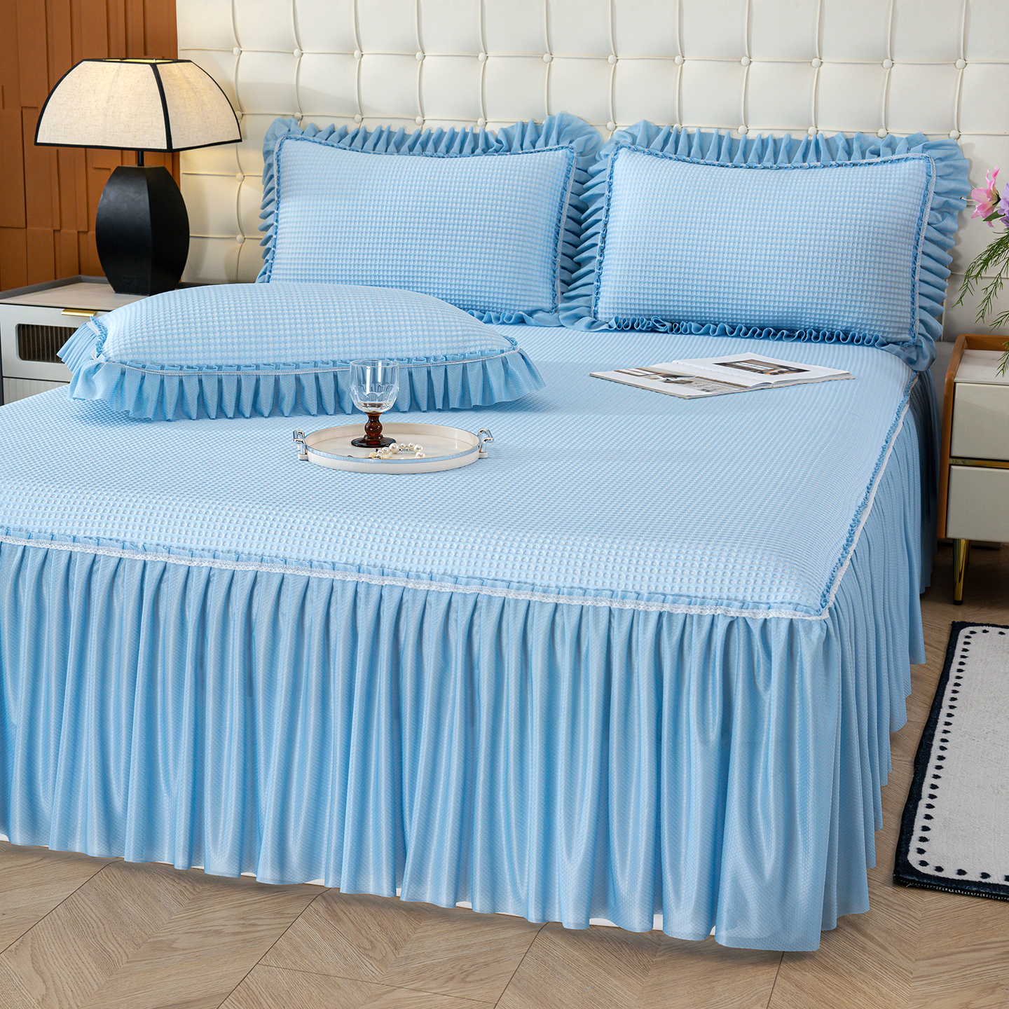 商品名称:归属 2026新款冰豆豆床裙款凉席凉豆豆长裙款凉席 天蓝