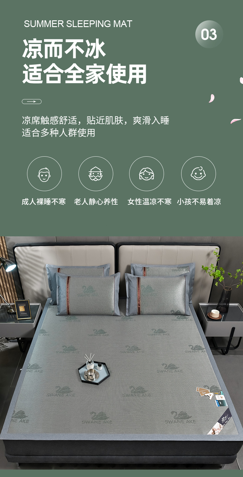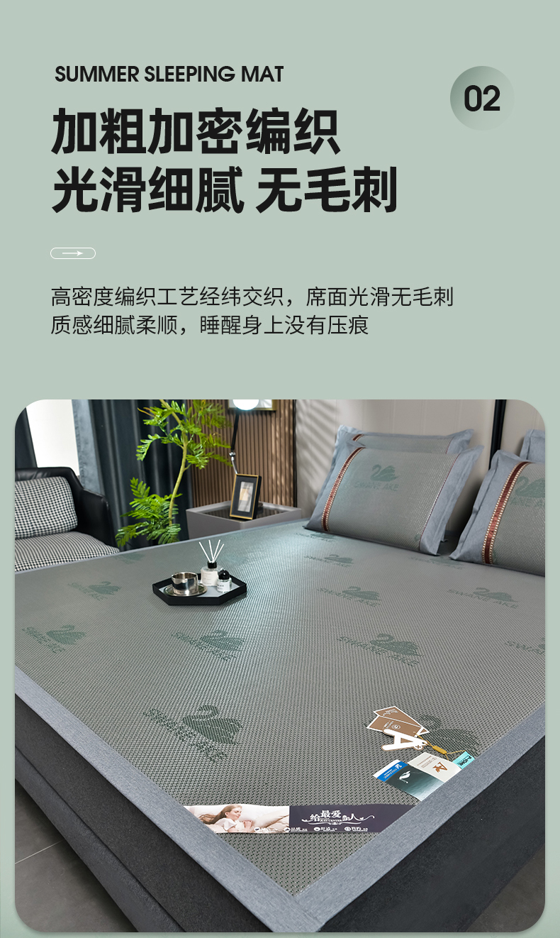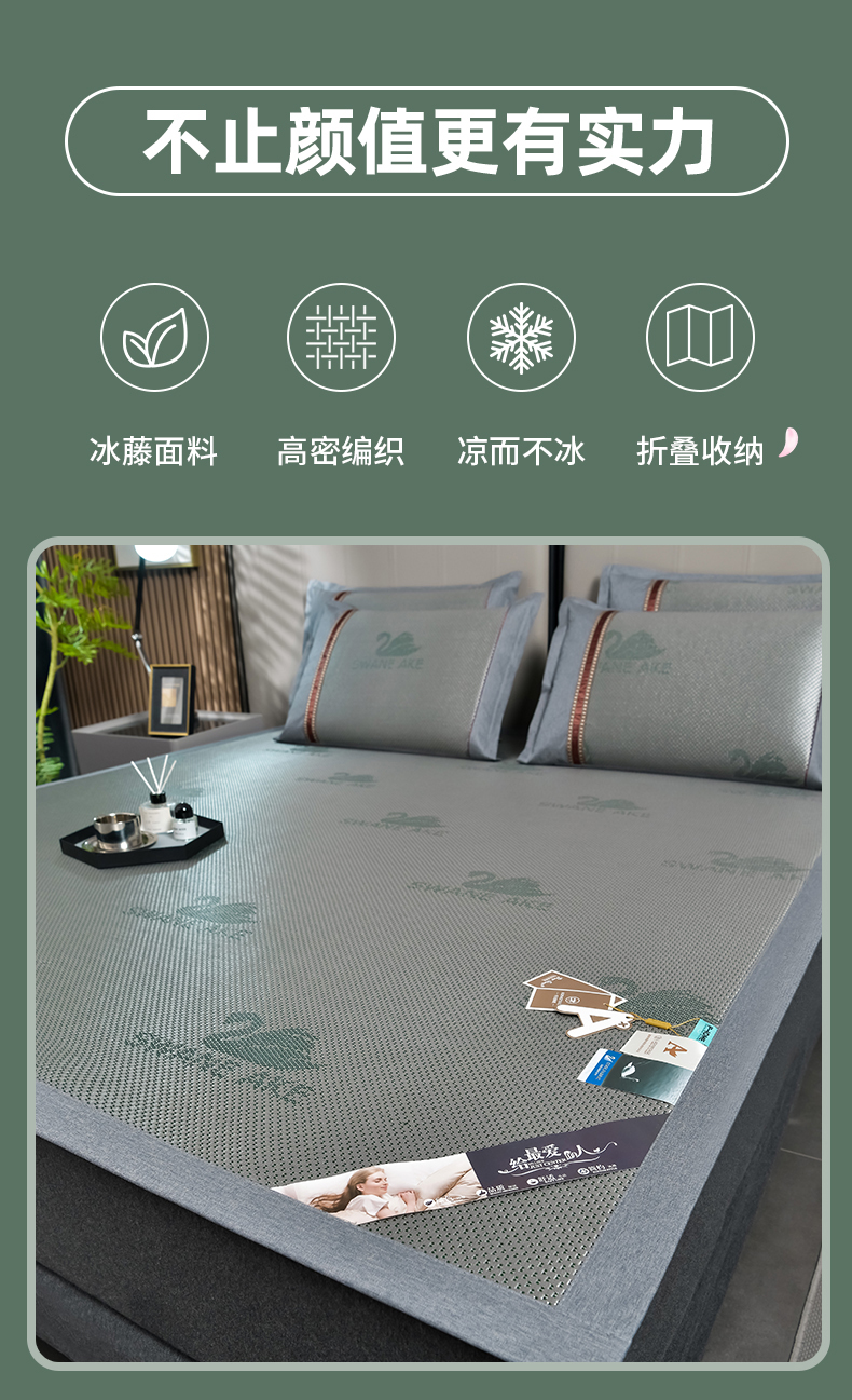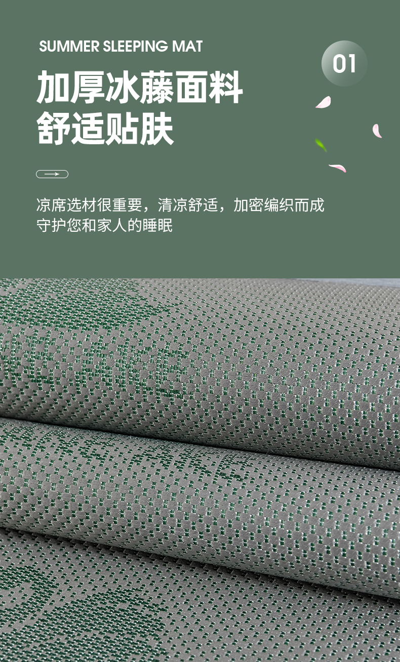 当前位置: 91家纺网 > 商品网购 > 床上用品 > 凉席 > 其他凉席 > 小牛席业 2026新款加厚天鹅冰藤席系列 加厚款-天鹅冰藤席(墨绿)