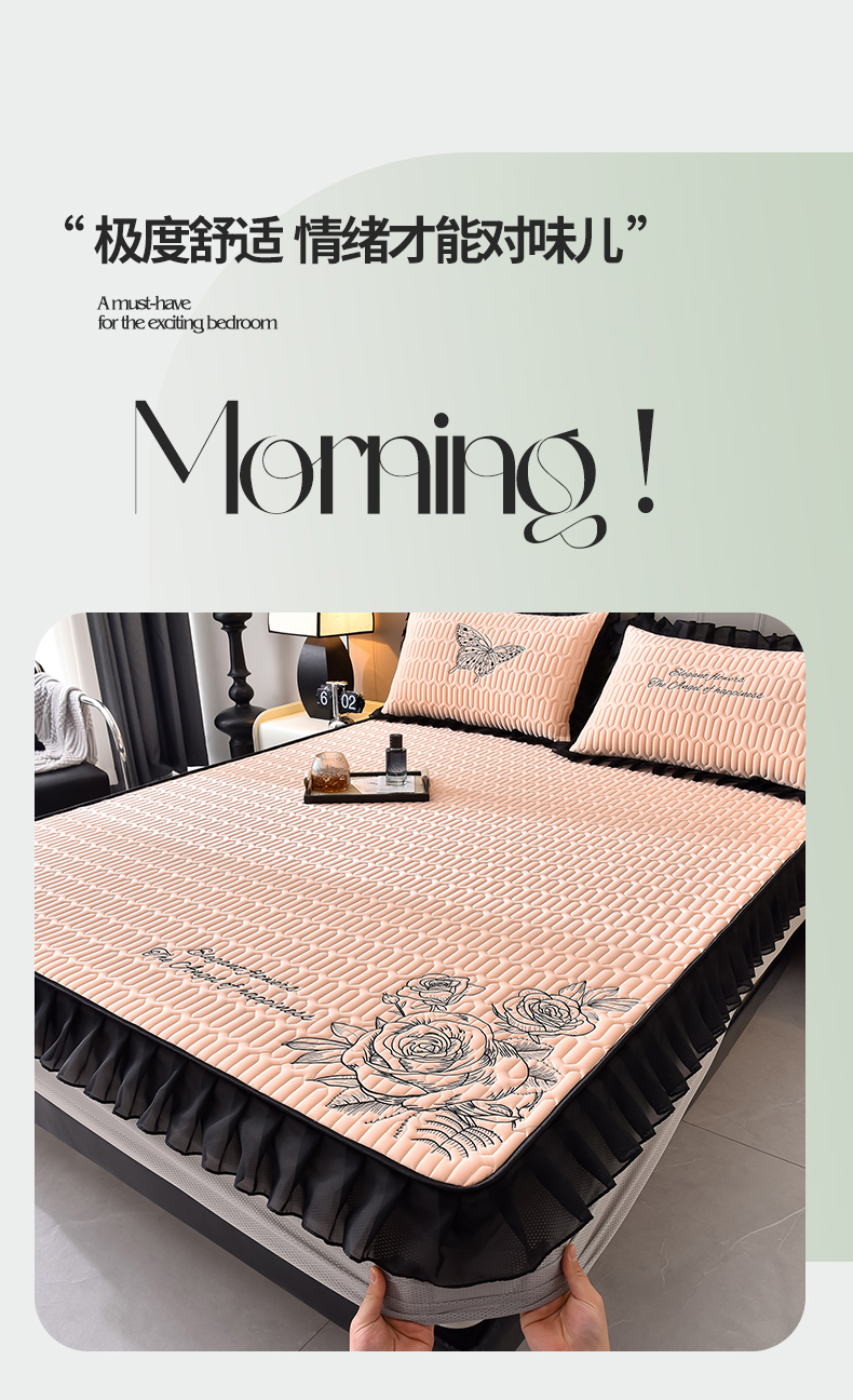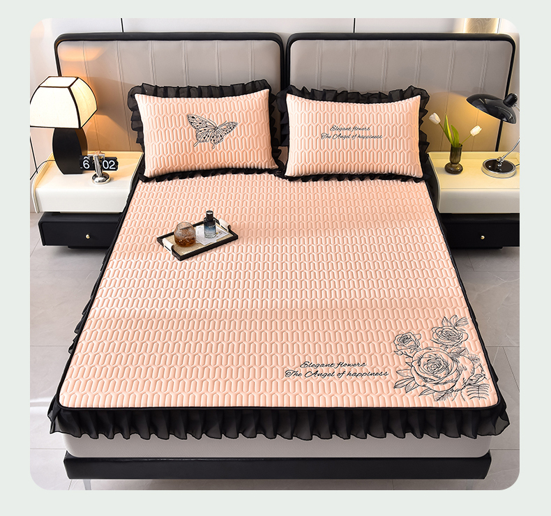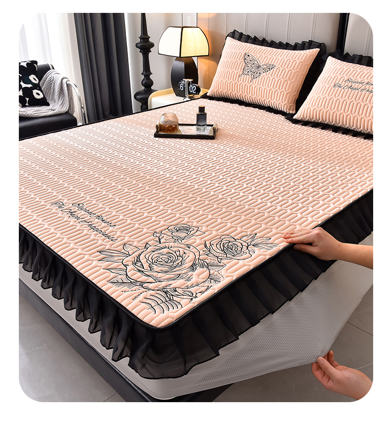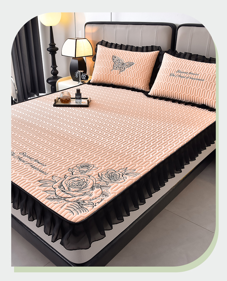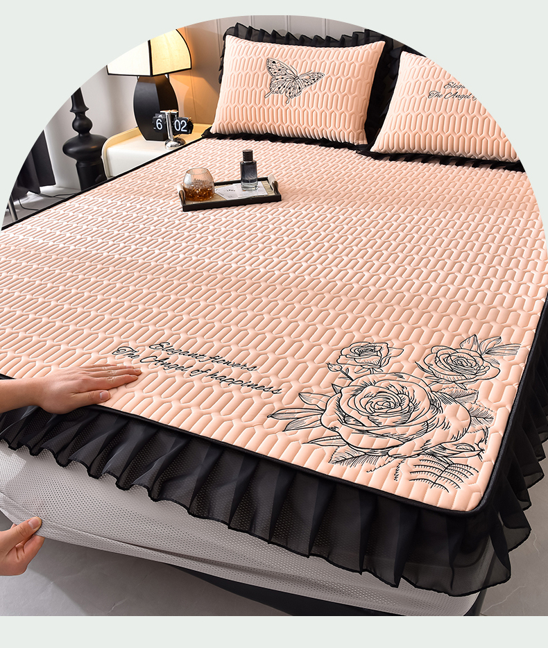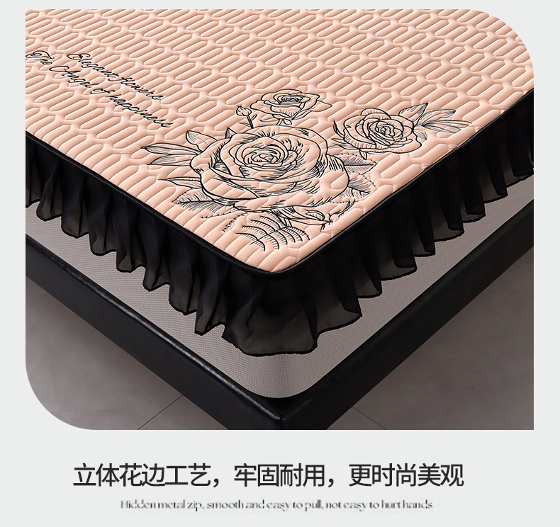 炫拼家纺 2026新款A类凉感丝花边床笠款乳胶凉席-法式玫瑰 法式玫瑰-香妃粉