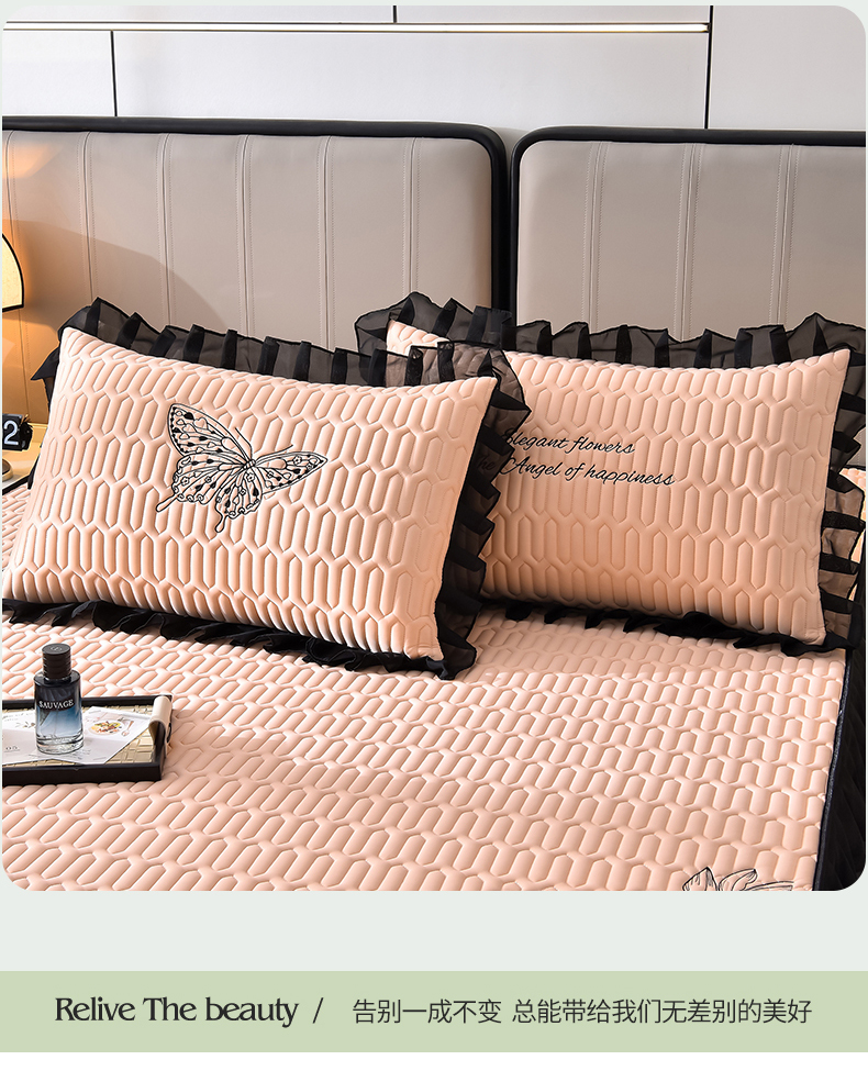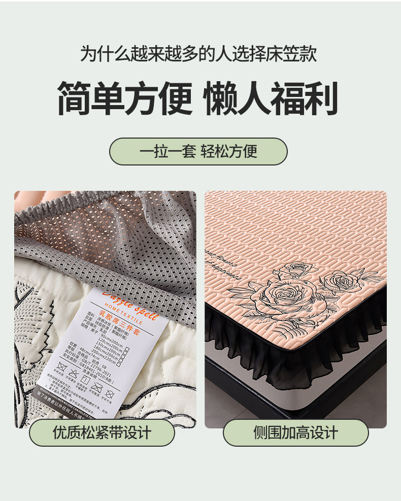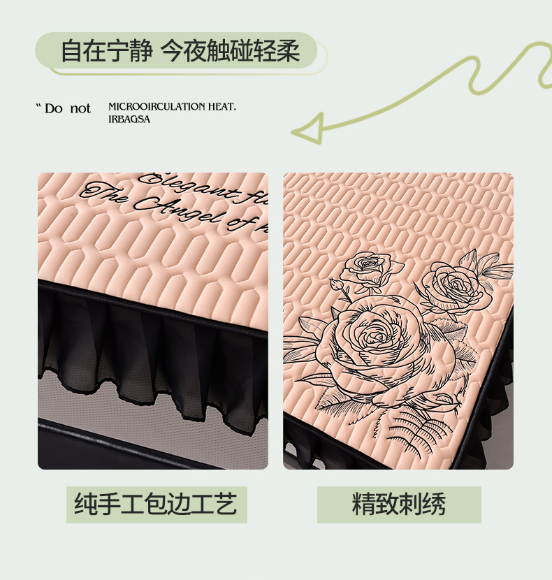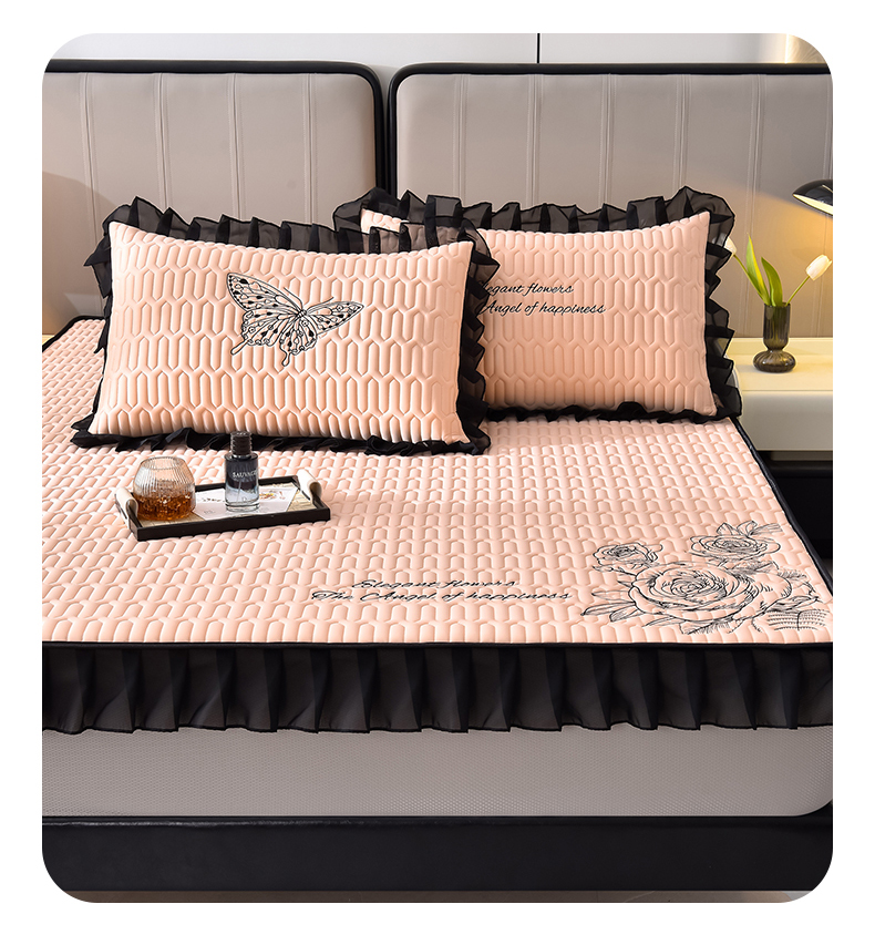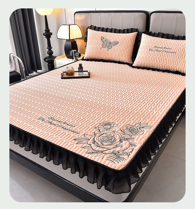 炫拼家纺 2026新款A类凉感丝花边床笠款乳胶凉席-法式玫瑰 法式玫瑰-香妃粉