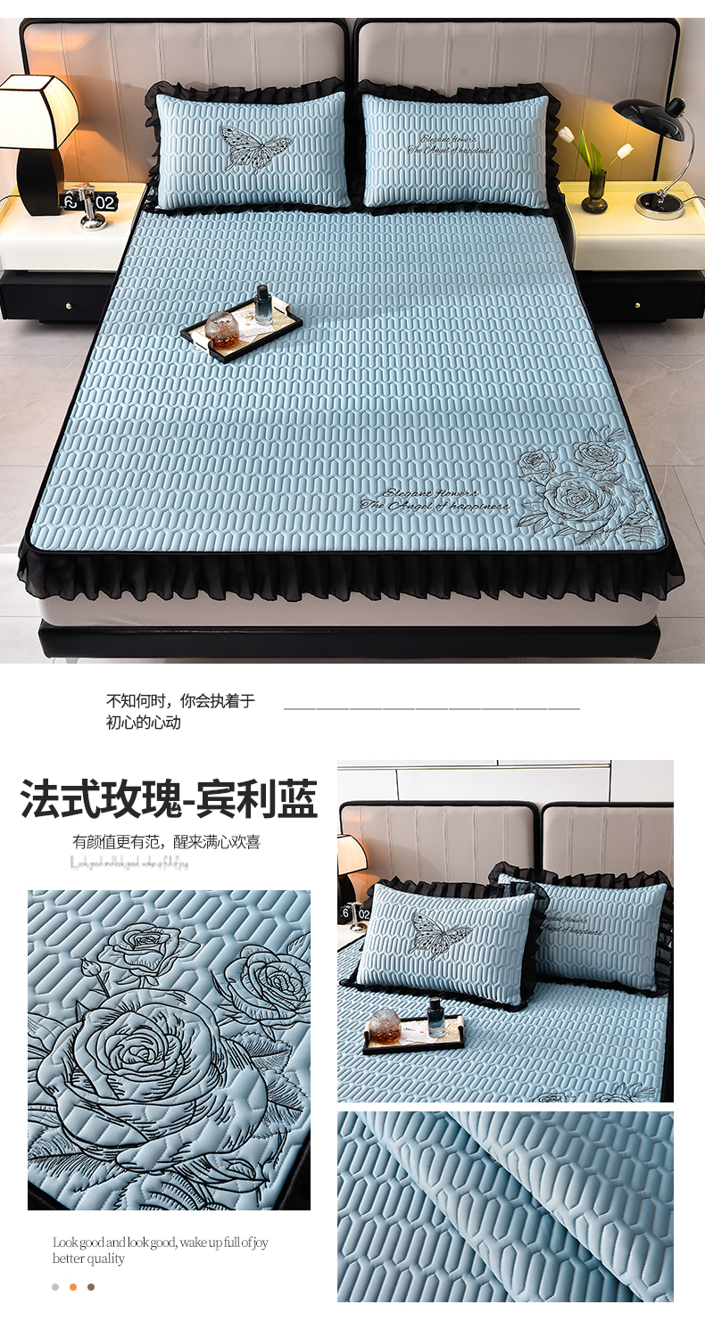 (总)炫拼家纺 2026新款A类凉感丝花边床笠款乳胶凉席-法式玫瑰,法式玫瑰-珍珠灰,法式玫瑰-宾利蓝,法式玫瑰-冰雪蓝,法式玫瑰-香妃粉,法式玫瑰-玉石白