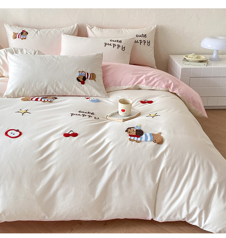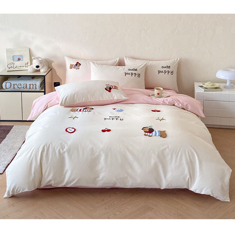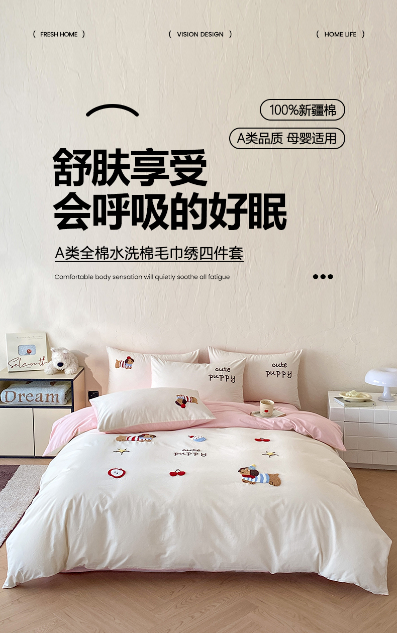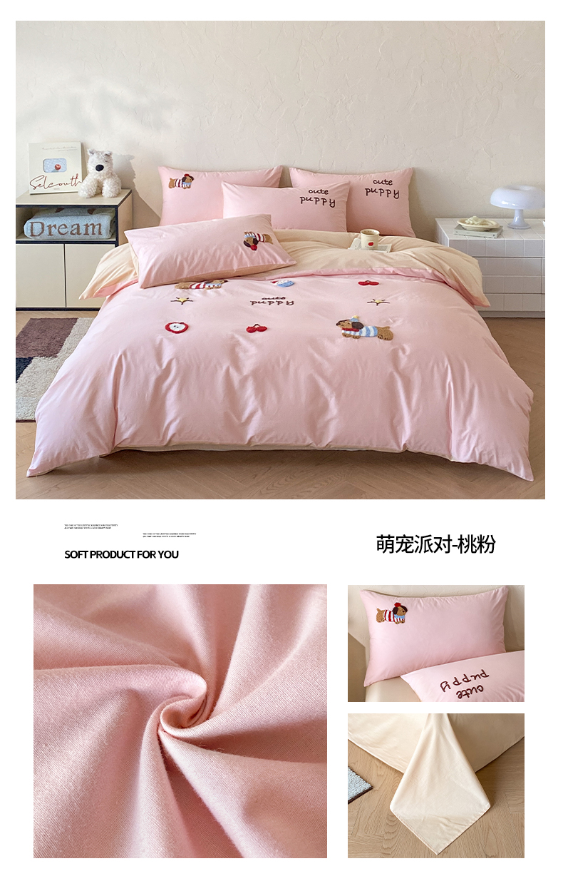 当前位置: 91家纺网 > 商品网购 > 床品套件 > 四件套 > 全棉普通四件套 > 拼社家纺 2026新款A类母婴级全棉纯棉水洗棉四件套毛巾绣纯棉四件套床上用品提供买家秀 萌宠派对-樱花粉