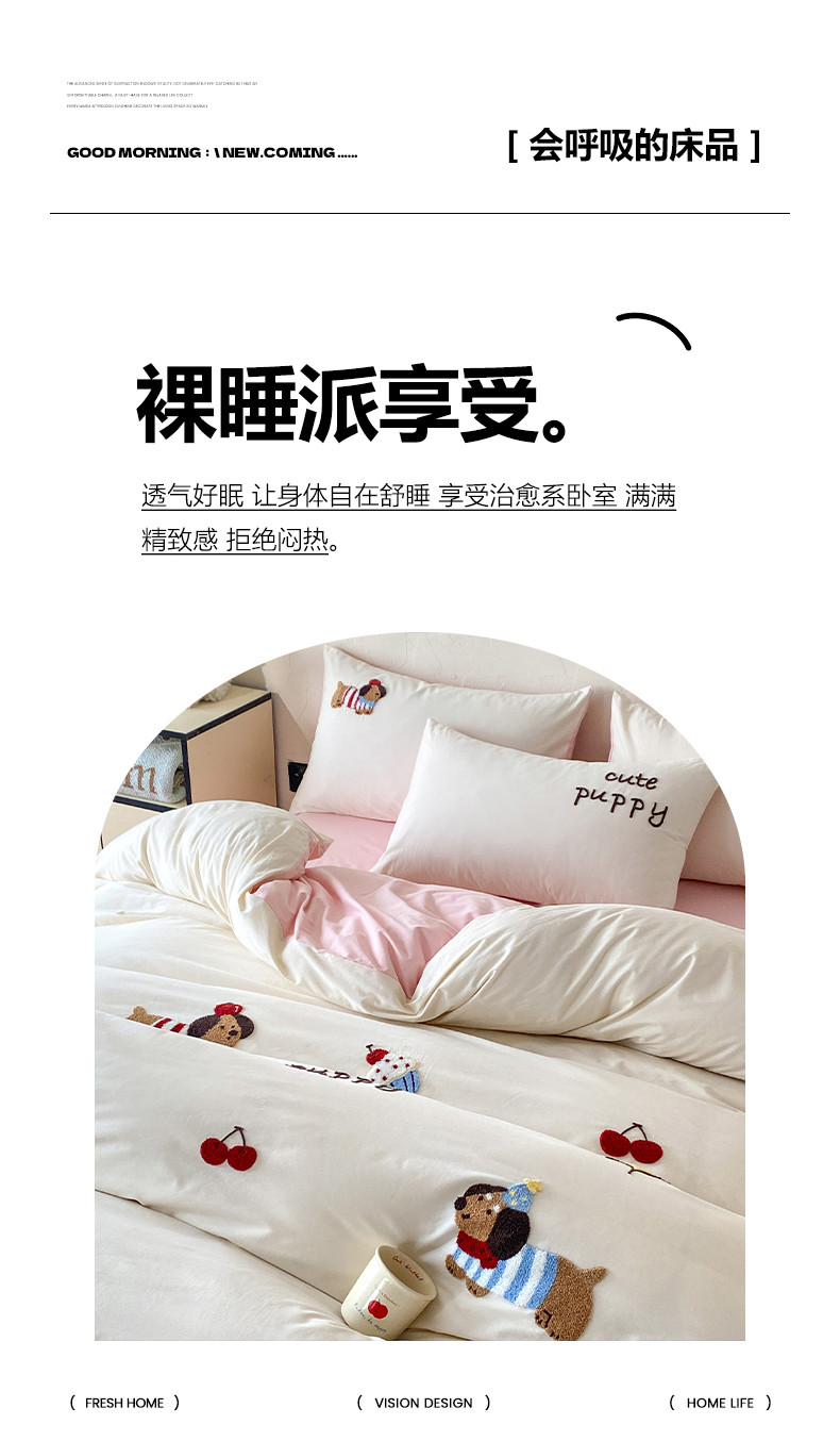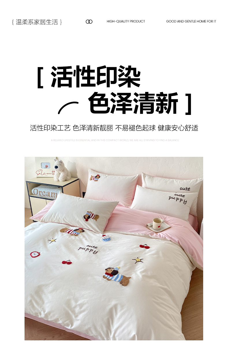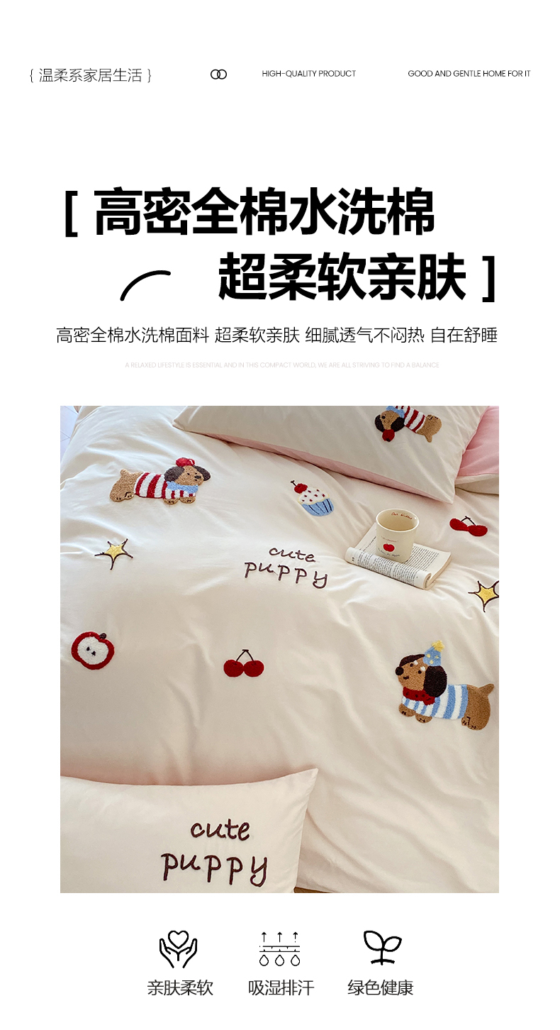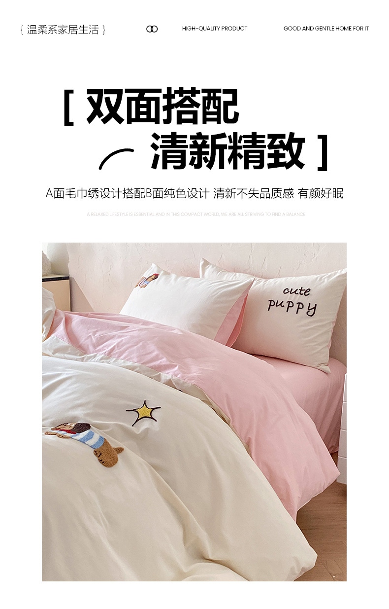 当前位置: 91家纺网 > 商品网购 > 床品套件 > 四件套 > 全棉普通四件套 > 拼社家纺 2026新款A类母婴级全棉纯棉水洗棉四件套毛巾绣纯棉四件套床上用品提供买家秀 萌宠派对-樱花粉