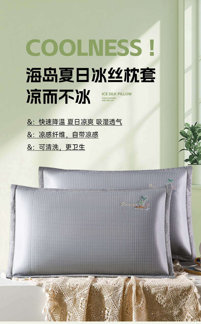 • 91家纺网 家纺一手货源 找家纺 小牛席业 2026新款海岛夏日凉感冰丝枕套凉枕套夏天枕套冰丝枕套竹枕套藤枕套冰藤枕套 海岛夏日凉感冰丝枕套-灰色