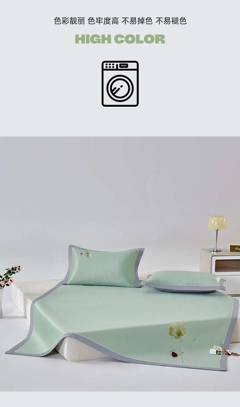 (总)2023新款超精密冰丝席-小斜纹系列-床笠款藤席凉席竹席,粉色,蓝色,绿色,银灰
