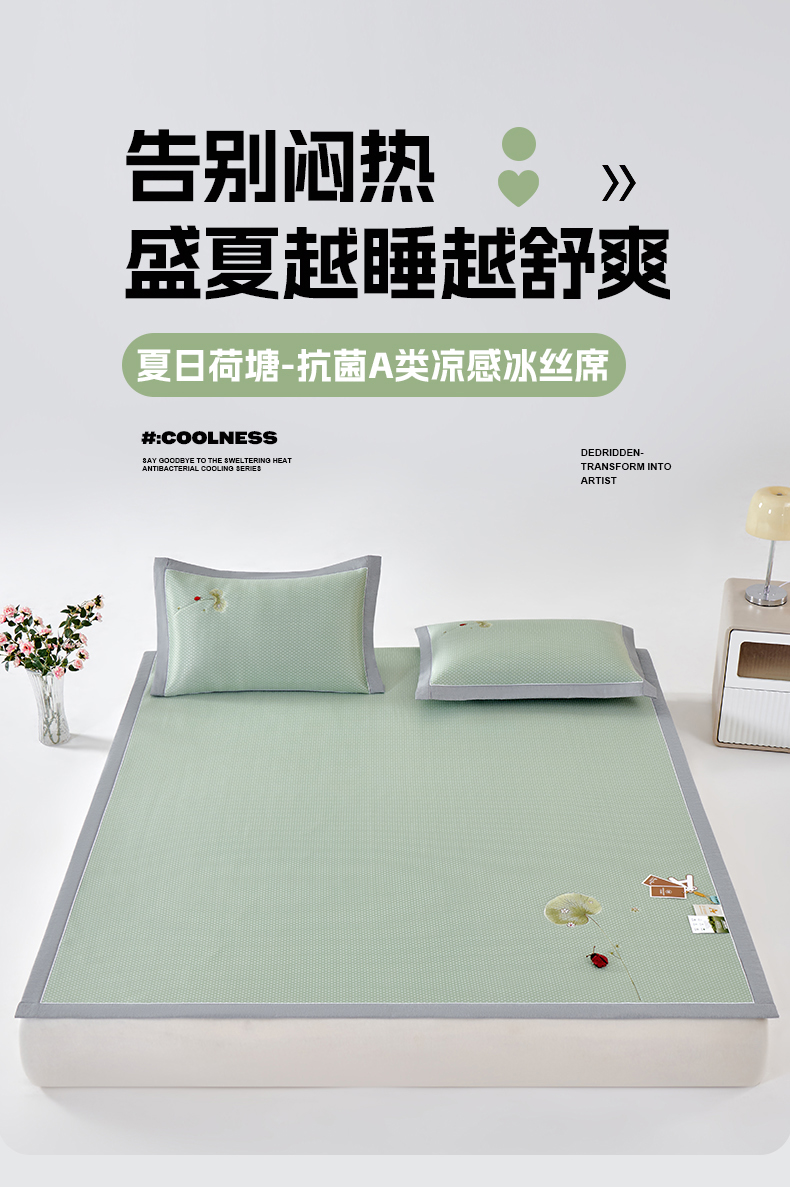 (总)小牛席业 2026新款小冰块大象凉感冰丝席(床笠款)凉席竹席藤席冰藤席乳胶席豆豆席,绿色,粉色,灰色,蓝色,香槟